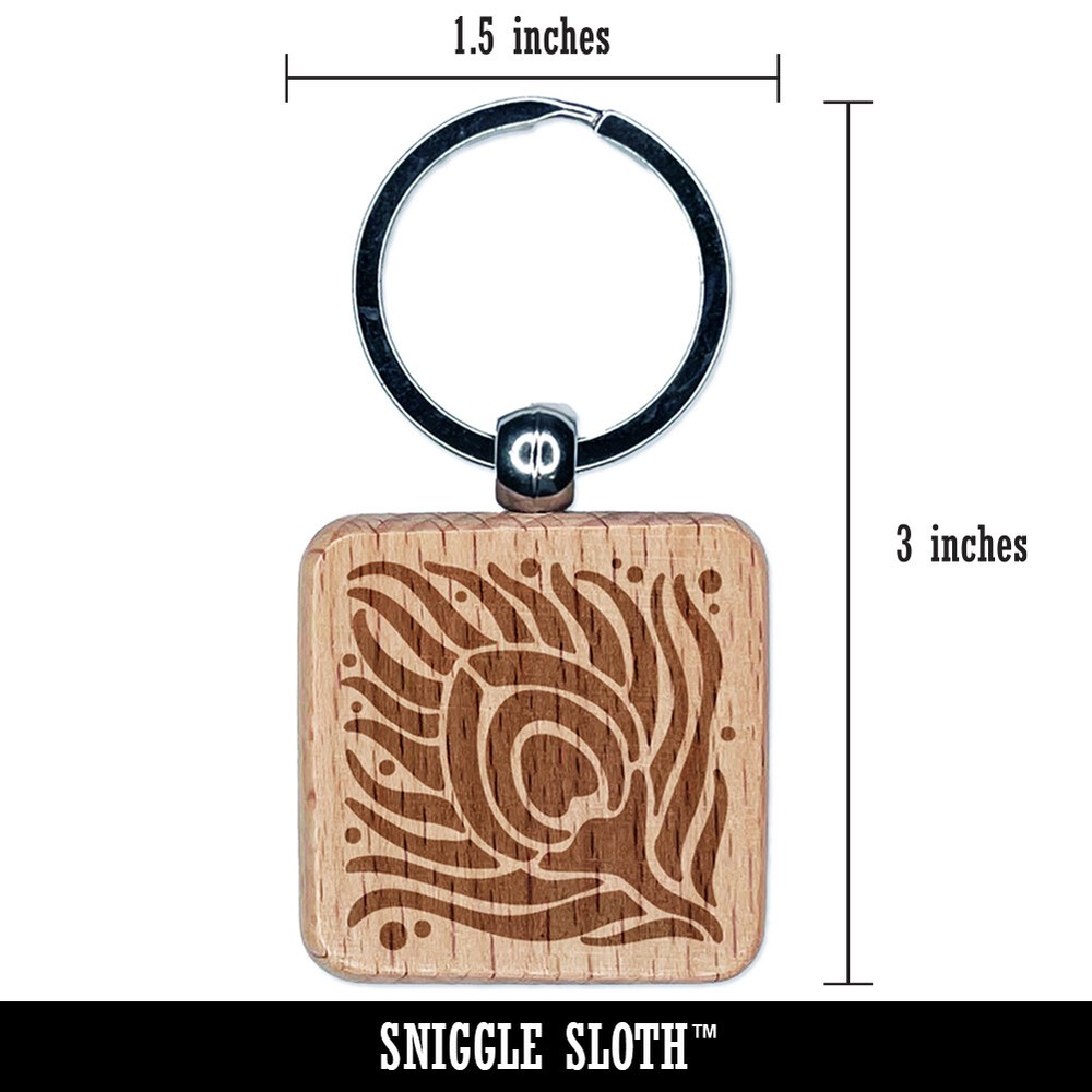 Artsy Peacock Feather Engraved Wooden Keychain Charm Tag