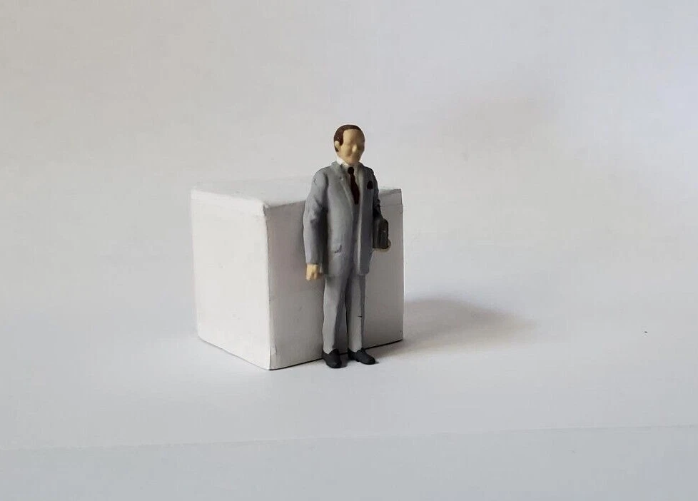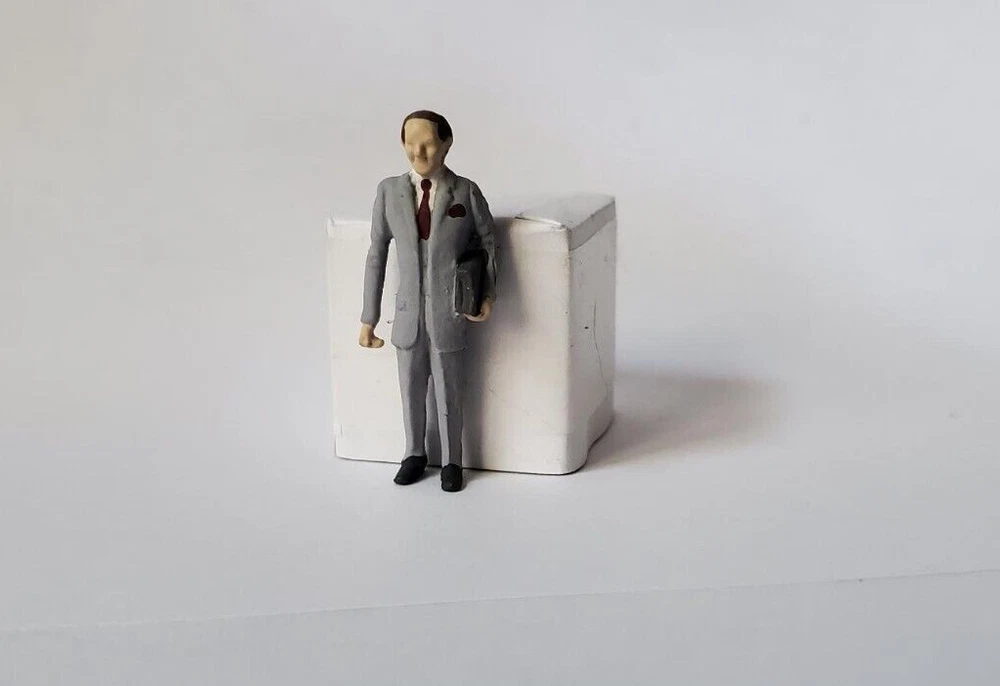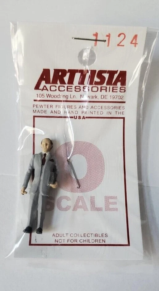 Arttista Figure #1124 Businessman Standing Also see: #1126 - Man in Suit with Foot Up O Scale - Pewter & Hand painted Arttista figures are made in the U.S. and are some of most realistic available. Each one tells its own story. Because each figure is hand painted by the manufacturer, colors may vary from the photo. Best selection available!! Xtrains carries a complete inventory of Arttista O & S scale figures. They’re very popular, so if something is not currently in stock, check back periodically … it’s already on order! Shipping will combine automatically when you place all your items in your shopping cart & allows you to make one payment for everything. This is new item, direct from the manufacturer