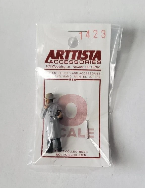 Arttista Figure #1423 Suspicious Character O Scale - Pewter & Hand painted Arttista figures are made in the U.S. and are some of most realistic available. Each one tells its own story. Because each figure is hand painted by the manufacturer, colors may vary from the photo. Best selection available!! Xtrains carries a complete inventory of Arttista O & S scale figures. They’re very popular, so if something is not currently in stock, check back periodically … it’s already on order! Shipping will combine automatically when you place all your items in your shopping cart & allows you to make one payment for everything. This is new item, direct from the manufacturer