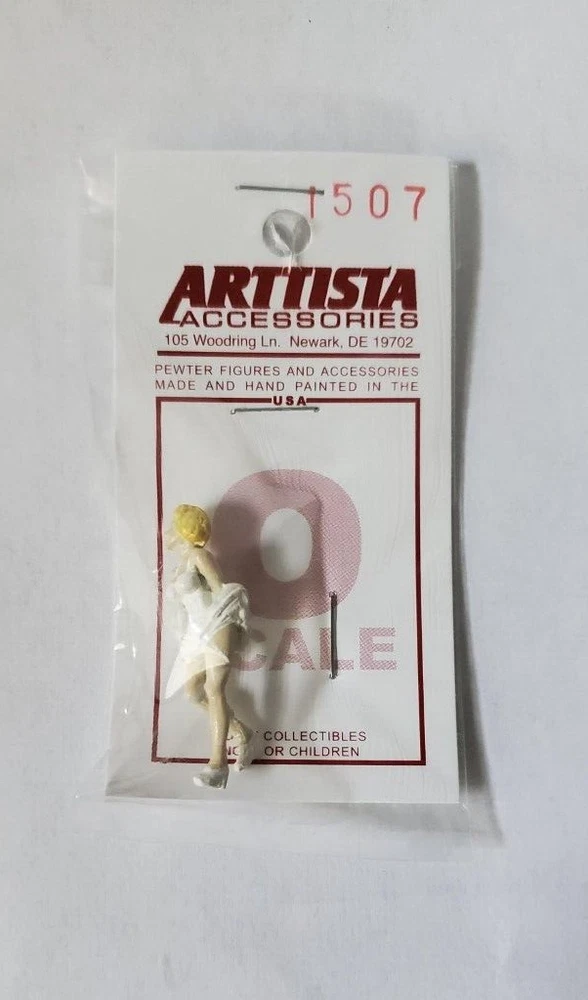 Arttista Figure #1507 Woman with Dress Blowing UP Also see: #1504 - Young Girl Walking / Stepping Up or down O Scale - Pewter & Hand painted Arttista figures are made in the U.S. and are some of most realistic available. Each one tells its own story. Because each figure is hand painted by the manufacturer, colors may vary from the photo. Best selection available!! Xtrains carries a complete inventory of Arttista O & S scale figures. They’re very popular, so if something is not currently in stock, check back periodically … it’s already on order! Shipping will combine automatically when you place all your items in your shopping cart & allows you to make one payment for everything. This is new item, direct from the manufacturer