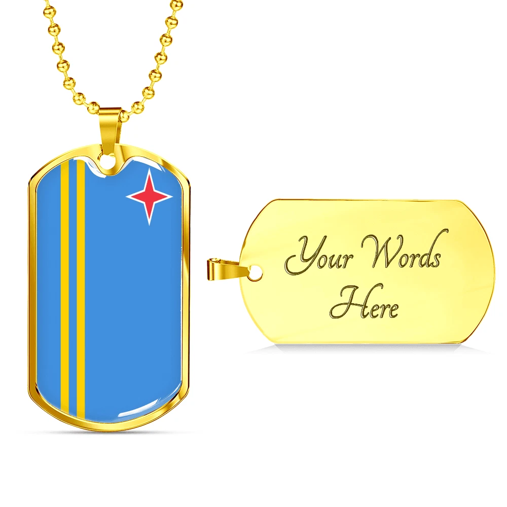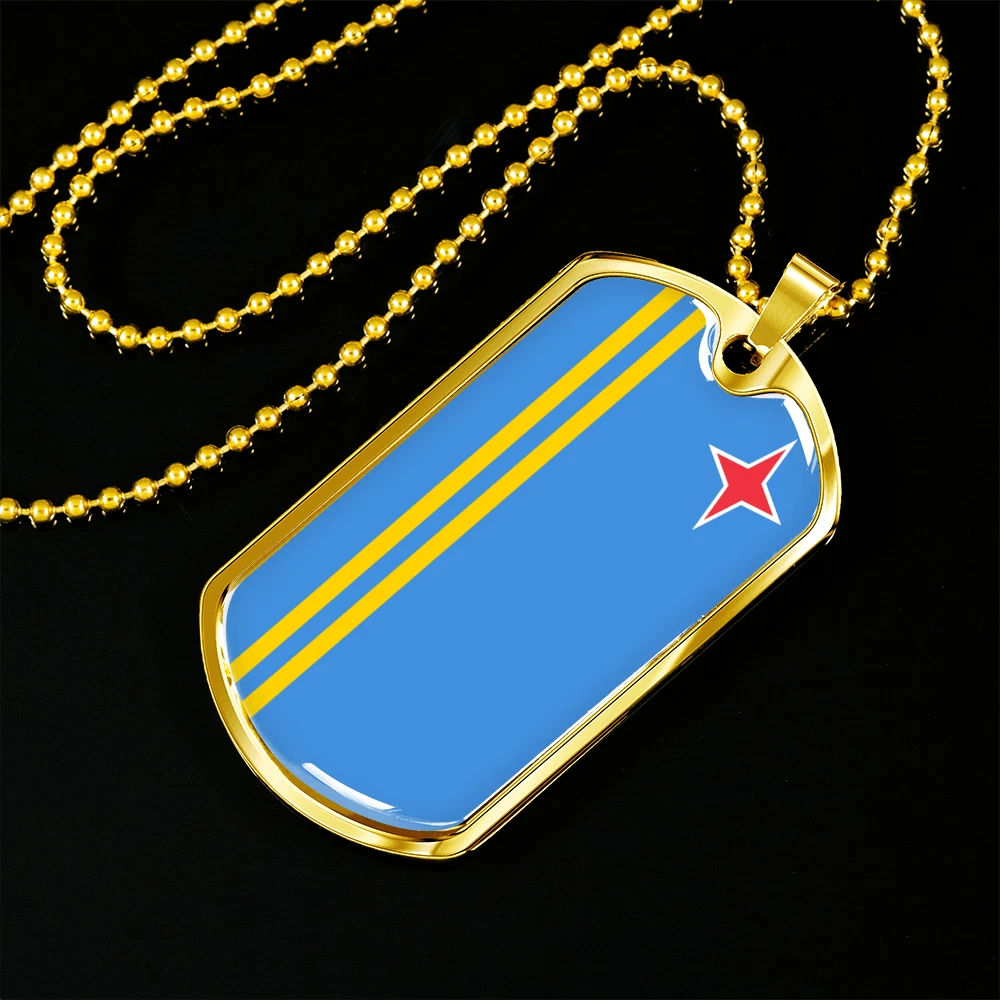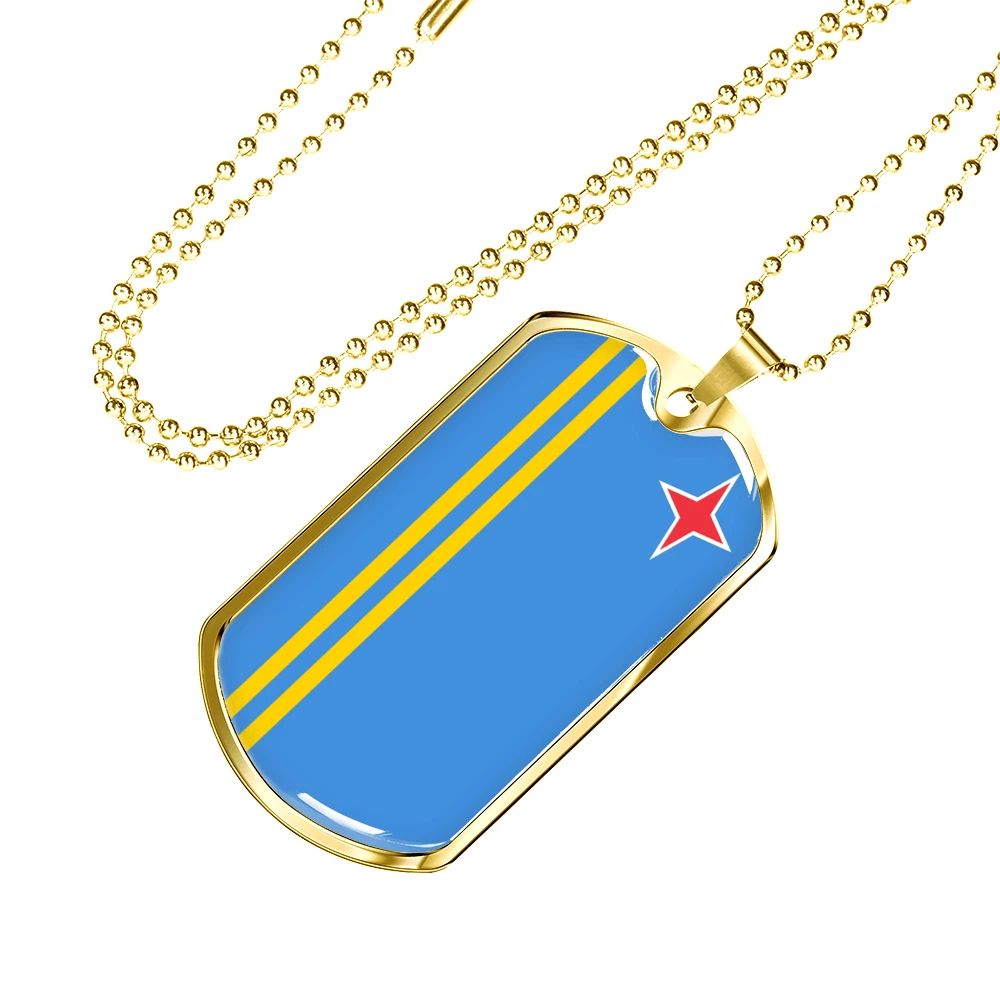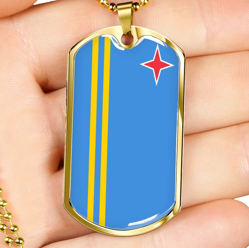 Aruba Flag Necklace Stainless Steel or 18k Gold Dog Tag 24" Chain