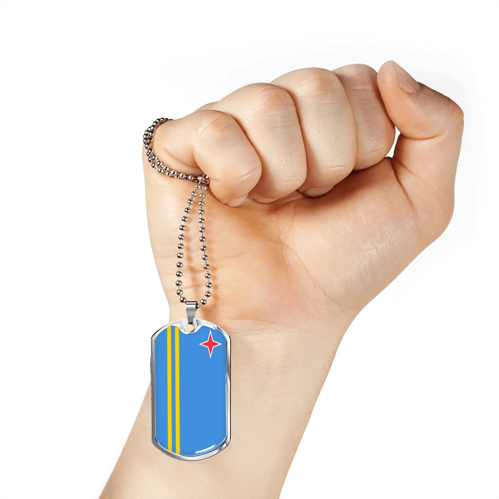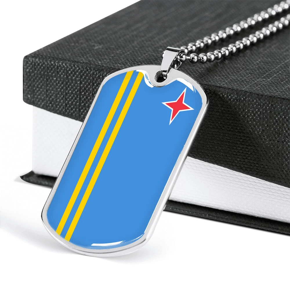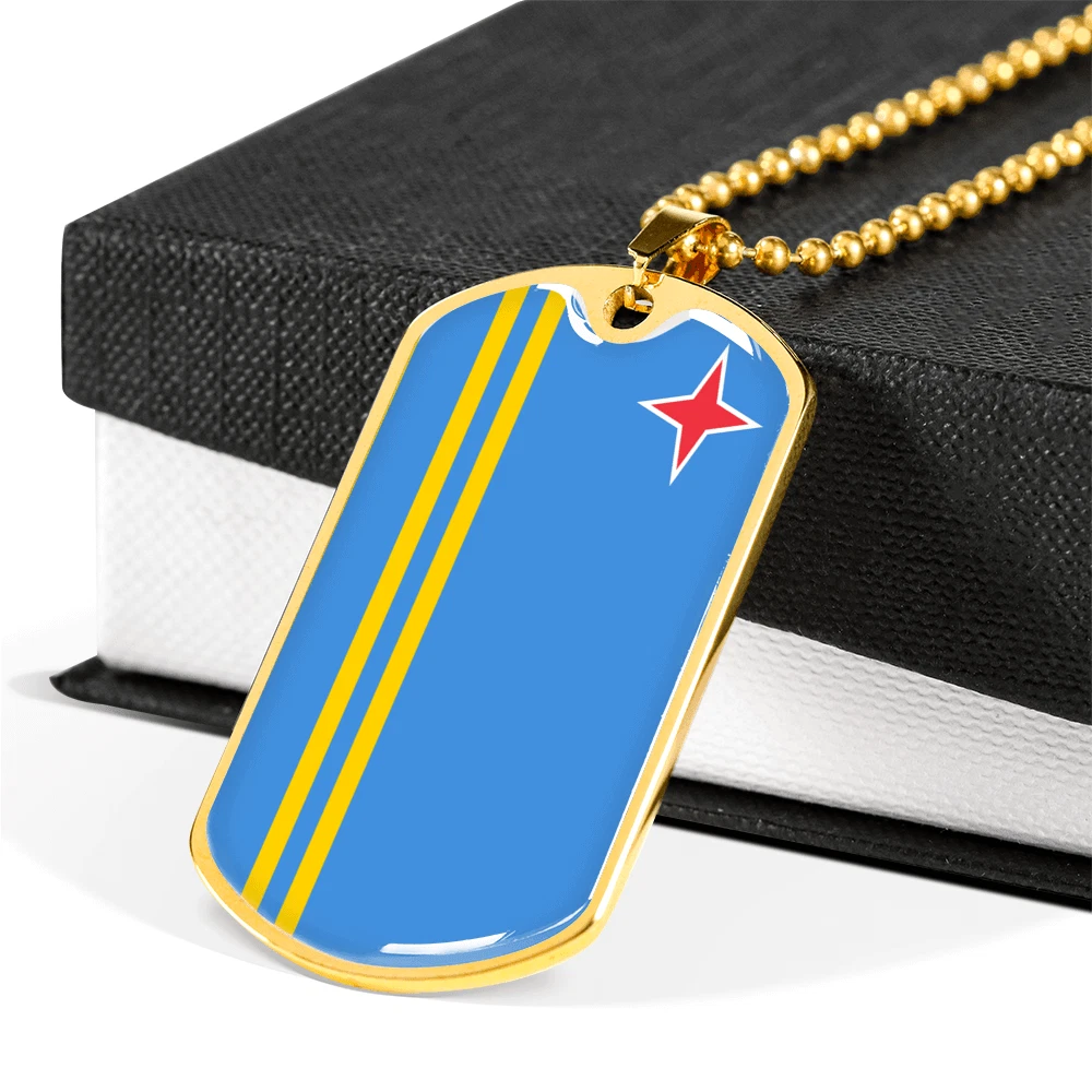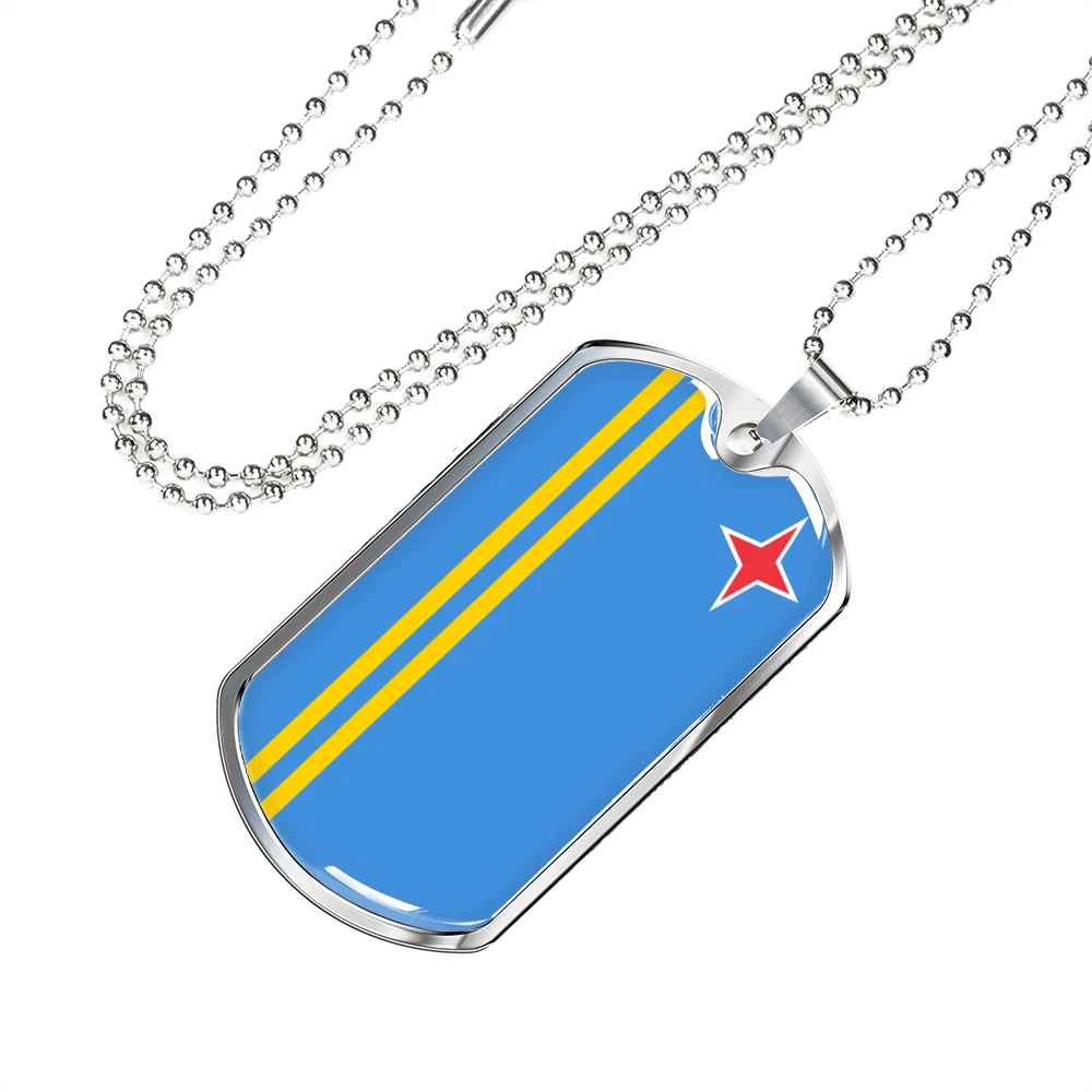 Aruba Flag Necklace Stainless Steel or 18k Gold Dog Tag 24" Chain