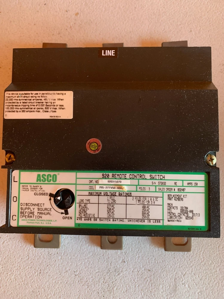 Asco 920 Contactor removed due to panel need to be 24 hours, Just removed last week working perfect, Returns are no problem. Also I have a bad review from a Ebay Buyer on a Contactor, I test before i ship especially contactors and it was working buyer should of sent item back. Any problem with item please send it back for refund Thank you.