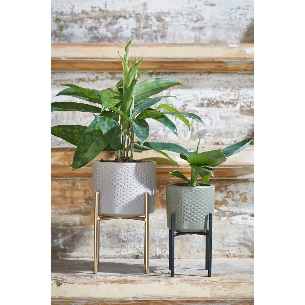 This iron planter is crafted from durable iron metal, offering a sturdy and long-lasting option for both indoor and outdoor use. Known for its industrial charm, an iron planter adds a touch of rugged elegance to any space while providing excellent support and protection for plants. Its sleek and often minimalist design complements both modern and traditional settings, offering a timeless aesthetic that withstands the elements. Free Shipping Over $49.99* Details Ascot Plant Stand Black 3.35"Dia - ST - Black Product Description: This iron planter is crafted from durable iron metal, offering a sturdy and long-lasting option for both indoor and outdoor use. Known for its industrial charm, an iron planter adds a touch of rugged elegance to any space while providing excellent support and protection for plants. Its sleek and often minimalist design complements both modern and traditional settings, offering a timeless aesthetic that withstands the elements.