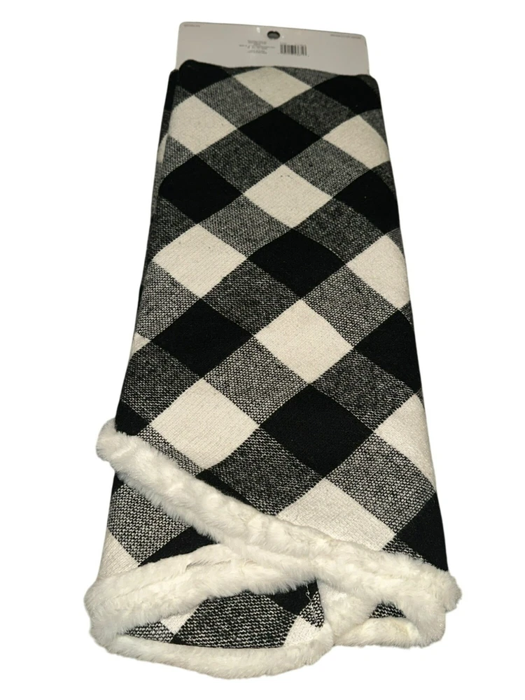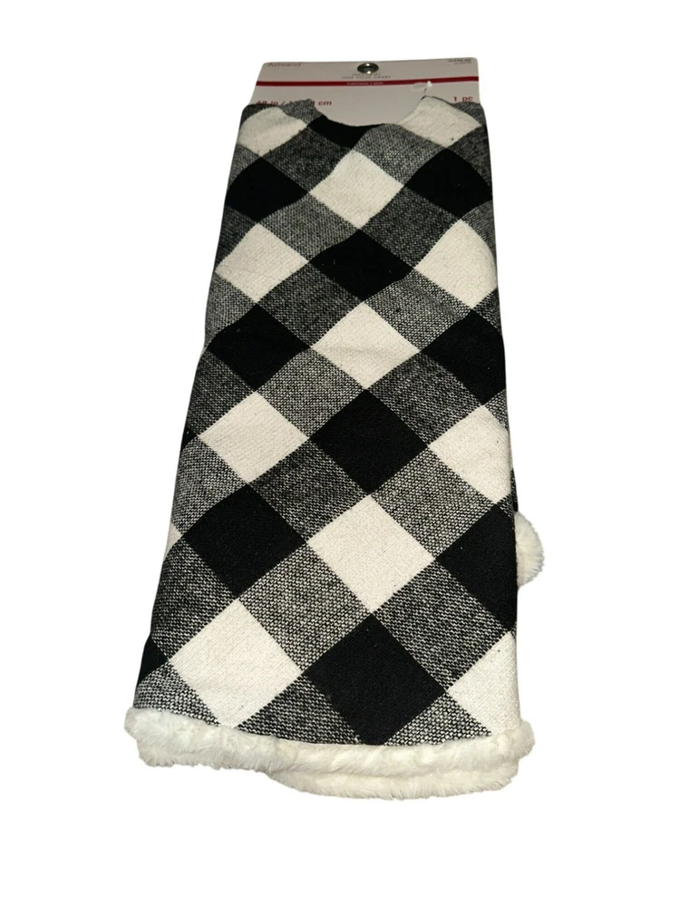 Ashland Holiday Christmas Holiday Tree Skirt Black and White Buffalo Check Fur Trim NWT Size: 48" Condition: Brand new with tags, never used Retail Price: $39.99 Color: Multi Material: Fabric Non-smoking and pet free environment.