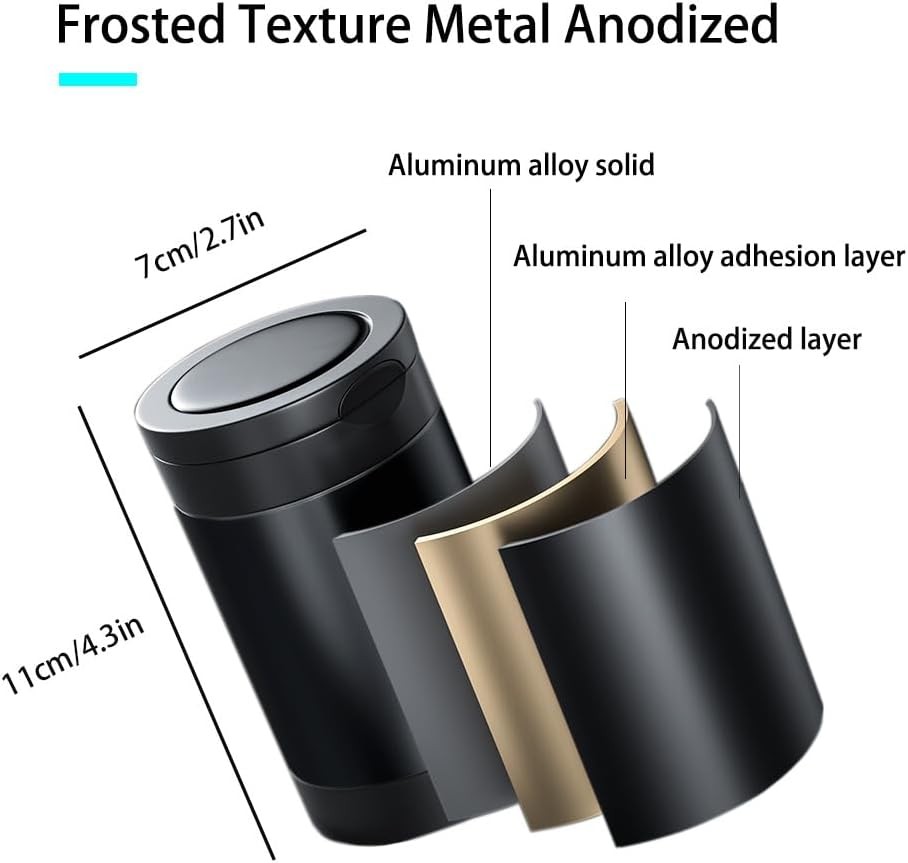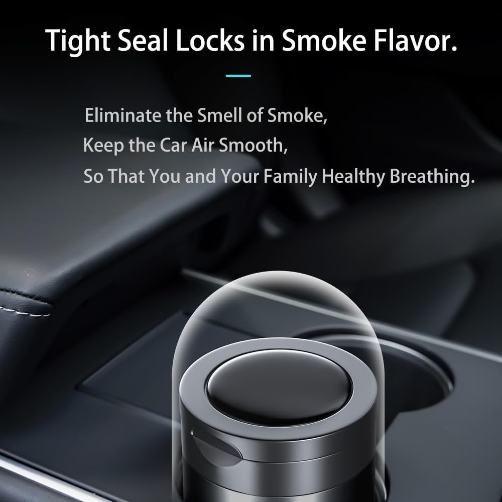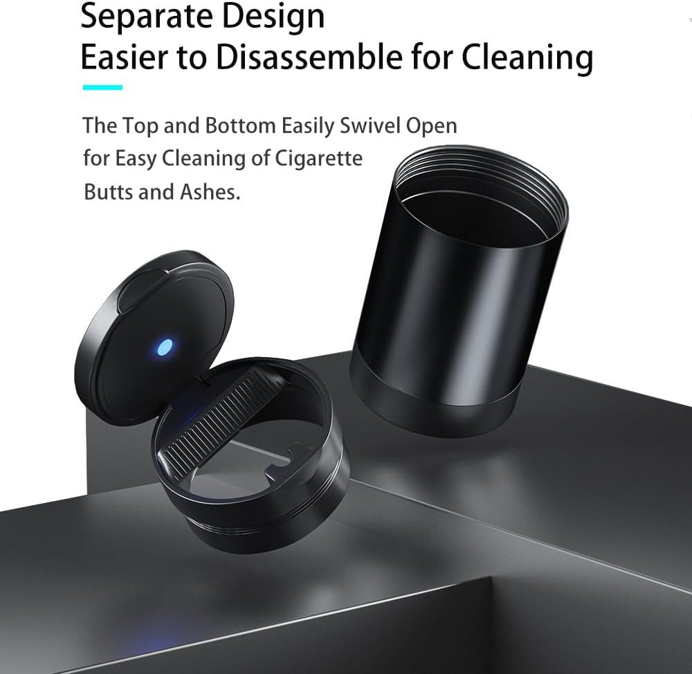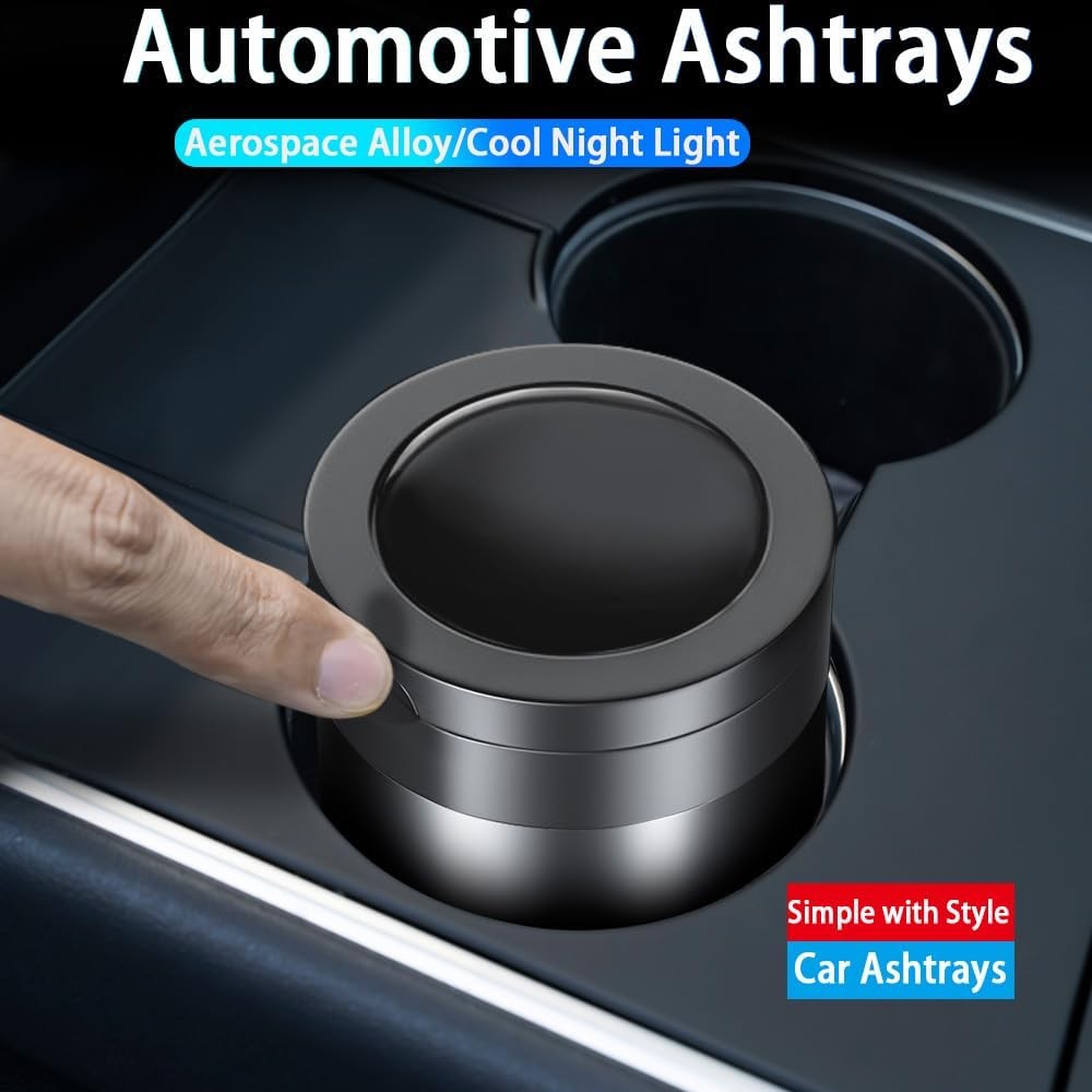 About this item Automatic LED Light: The portable ashtray with lid features a blue LED light that automatically turns on when the lid is opened, ensuring visibility in low light or dark environments. Large Capacity: With Package Dimensions of 2.75"L x 2.75"W x 4.33"H, this ash tray for cars offers ample space, not only for ash but also as a mini car trash can for small waste like crumbs, fruit peels, tissues, etc. User-Friendly Design: This car ashtray for cup holders features a wide extinguishing platform for quick cigarette extinguishing with a tap, a clip to secure the cigarette, and a lid that reduces oxygen to help the cigarette go out faster. Durable Materials: The ashtray for car is made of high-quality stainless steel and fire-resistant materials, leaving no burn marks. It is both aesthetically pleasing and durable. Easy to Clean: The top and bottom of the portable ashtray can be easily detached, allowing you to thoroughly clean it after each use. Package Dimensions: 2.75"L x 2.75"W x 4.33"H.