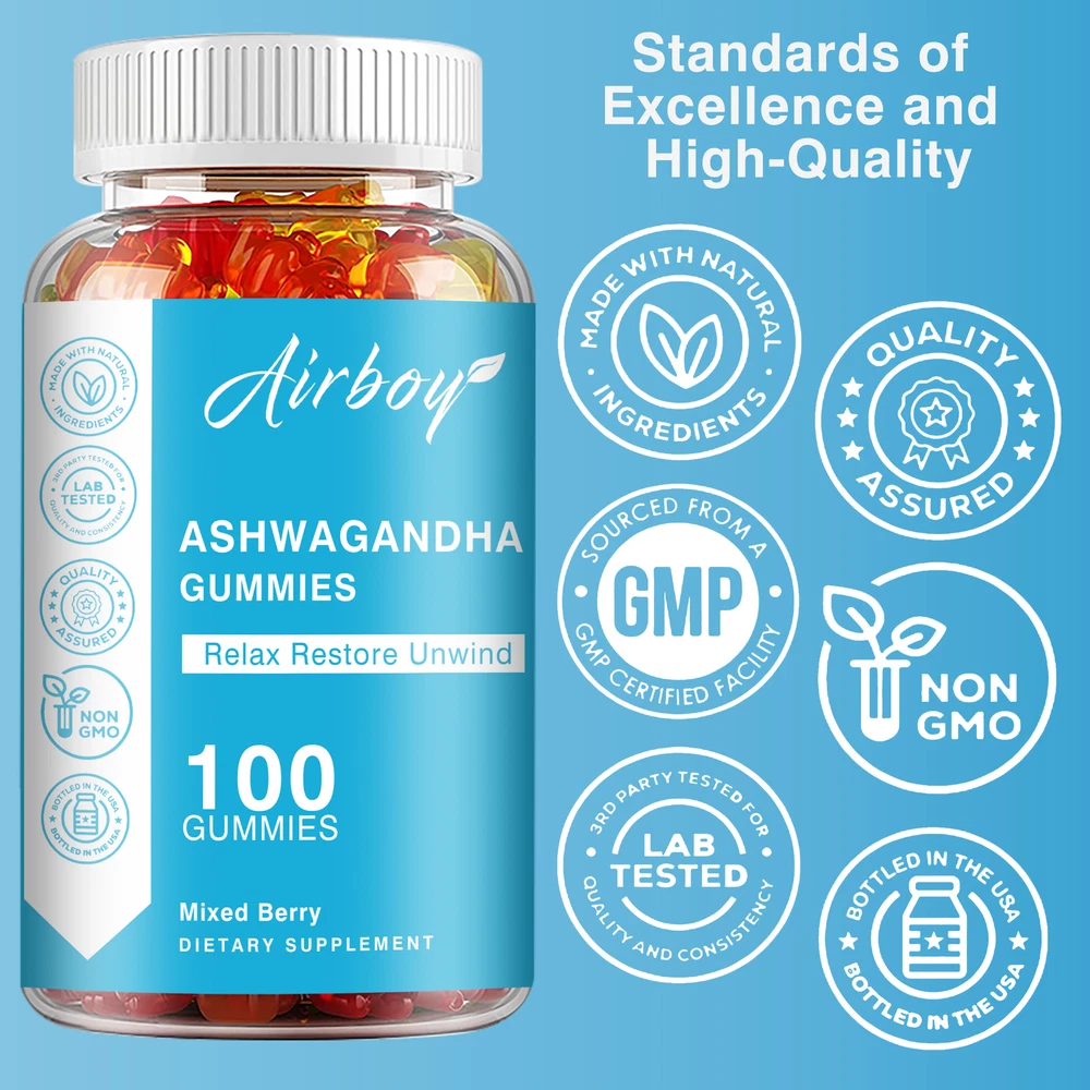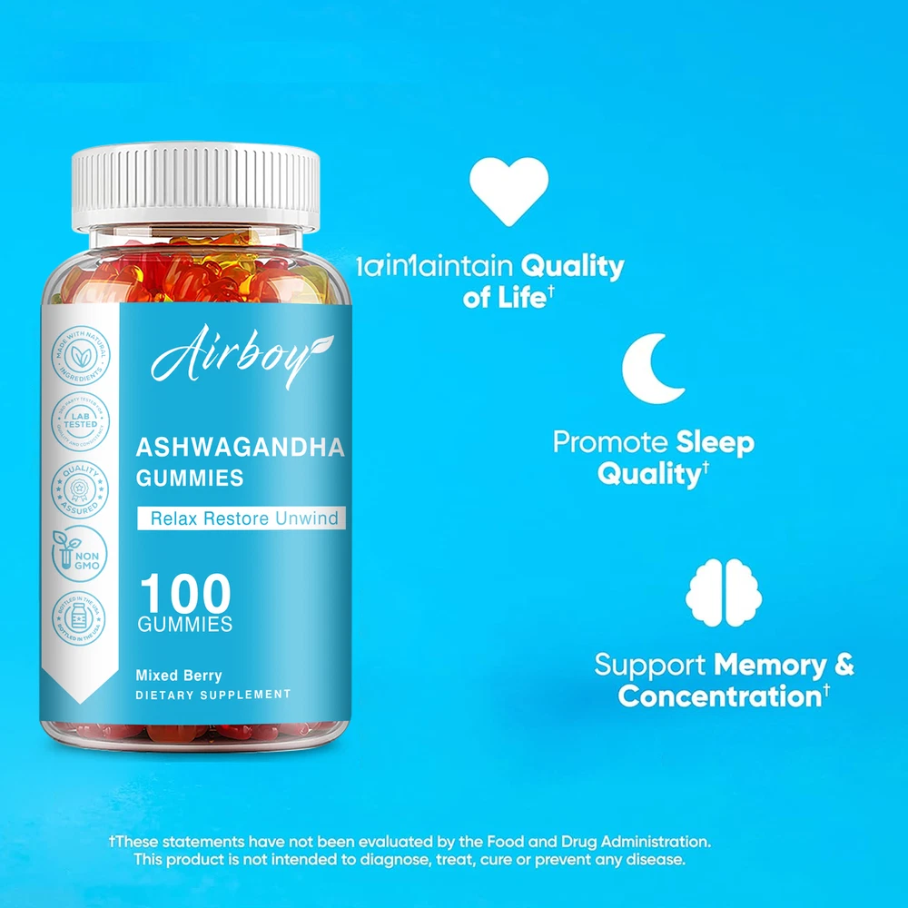 Effects: Positive Emotions, Relax, Calm, Sleep Support Ingredients: Ashwagandha Directions: Take 2 gummies once daily after a meal. Shipping: Ships within 48 hours on working days. Shelf life: 2 years Description: Powerful Ashwagandha Extract: Ashwagandha has been traditionally used as an adaptogen, a natural substance that helps the body naturally adapt to stress. Ashwagandha helps improve memory and concentration, maintain quality of life, and help you relax deeply and find a positive mindset. Ashwagandha helps maintain normal cortisol levels, reduces stress, promotes physical relaxation, lowers cortisol levels, suppresses appetite and improves sleep quality. This is a supplement that protects you year-round, supports your overall health, and is plant-based, vegan, non-GMO, and gluten-free. Document