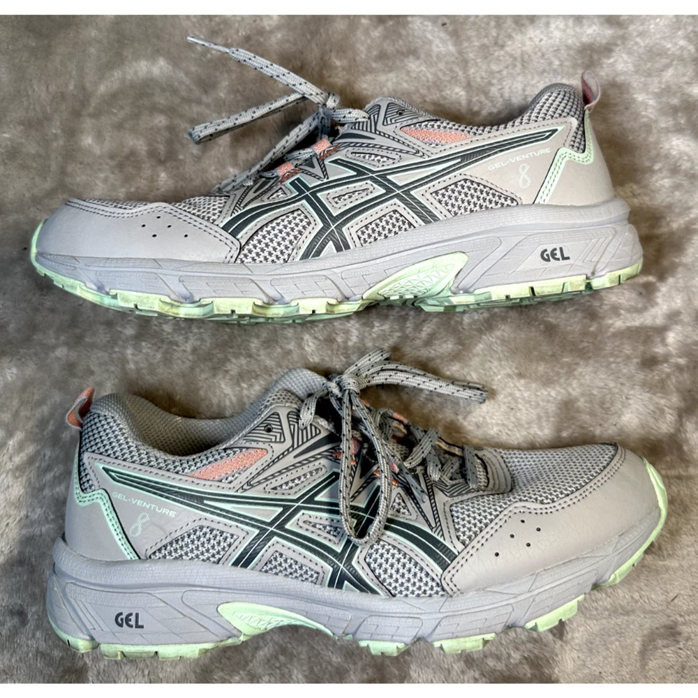 Asics Gel Venture 8 Gray Mint Green Running Shoes Athletic Sneakers Womens 7.5 Excellent condition - see pictures for wear Orders placed before 3pm PT Monday through Friday will ship the same day excluding holidays. Orders placed on holidays, weekends, or after 3pm will ship the next business day. Feel free to ask any questions before buying, we want you to be happy with your purchase. Smoke-free environment