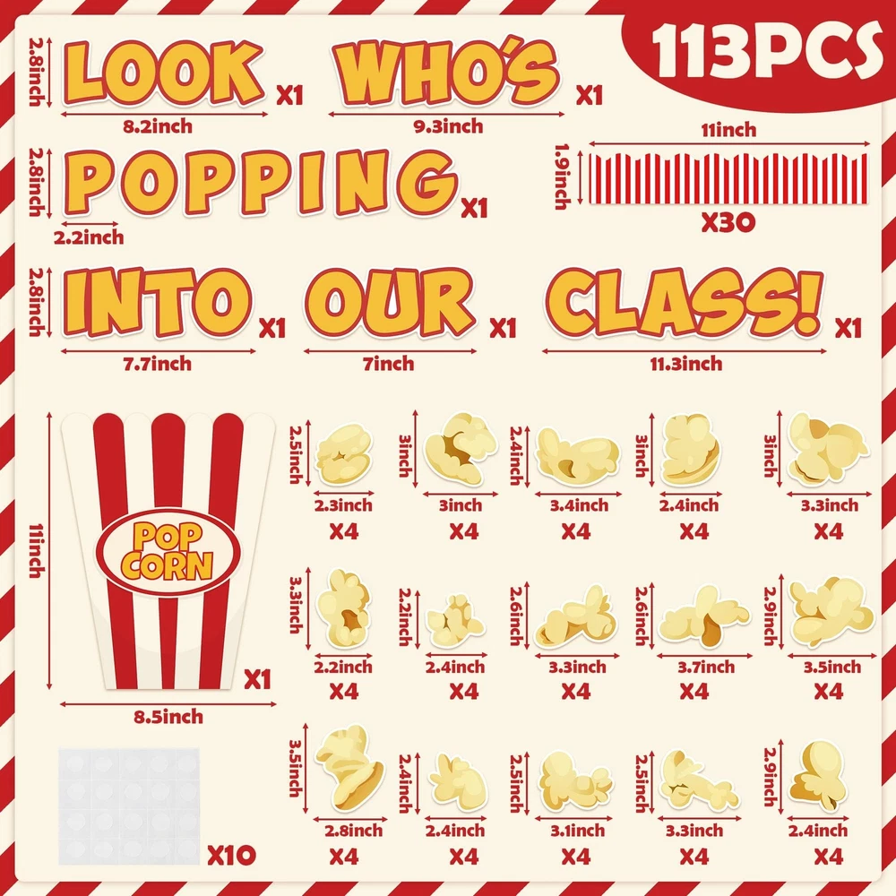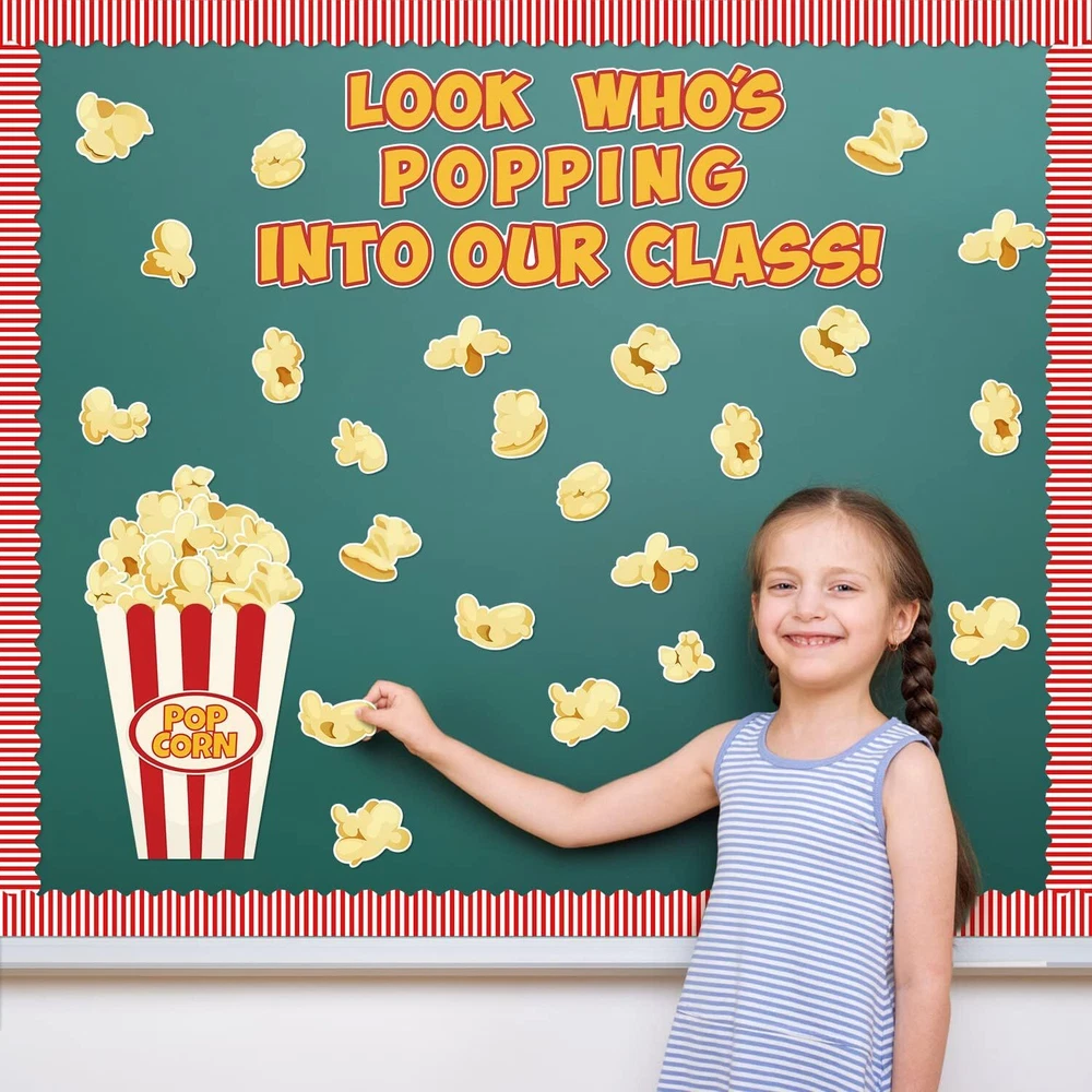 Popcorn Back To School Cutouts Set - The package contains 12 pieces words, 15 types popcorn*4, popcorn box*1, 30pcs border and 200pcs glue. These popcorn back to school bulletin board are a great gift to Welcome new children in class. Quality Material - The popcorn back to school bulletin board are made of sturdy and lightweight card material,exquisite workmanship and vivid patterns. They are good decorations for child back to school name tag classroom bulletin board. Attractive Design - These bulletin board Cutouts are wonderfully printed paper and exquisite cut, 3D effect patterns make them lively and realistic, the popcorn back to school decorations adding some nice feeling to back to home or school wall bulletin board. Convenient to Use - These colorful popcorn back to school bulletin board are very easy to use, you just need to put the glue stickers where you want, tear off the white protective film, and place the glue stickers on cutouts, these cutouts can be well fixed. Applicable Occasions - The creative popcorn back to school bulletin board accents can be applied for decoration of classrooms, bulletin boards, rooms,walls, doors, windows,etc.