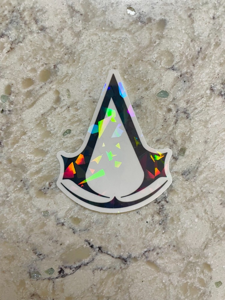 High quality waterproof Assassins Creed Logo sticker perfect for Assassins Creed and video game lovers! These are very durable long lasting die cut stickers meaning they are versatile. They can go on laptops, phones, tablets, notebooks, tumblers, mugs, binders, and more! Available in Gloss or Holographic Laminate and in Small, Medium, and Large. Small - 1.2" x 1.4" Medium - 2" x 2.4" Large - 2.8" x 3.3" Sticker Care Instructions - Make sure to clean surface before placing sticker - Hand wash only, not dishwasher safe - Apply only to smooth surfaces - 1-3 day processing time - Shipping time is usually 1-5 days but varies due to USPS services and shipping procedures - Returns are accepted within 30 days