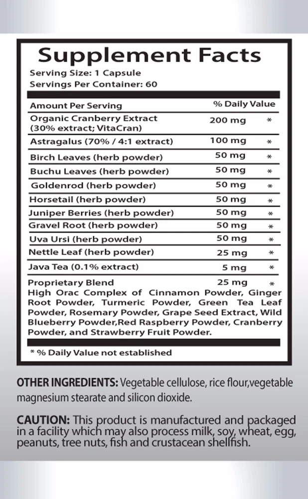 KIDNEY SUPPORT COMPLEX World Famous Herbal Supplements Manufactured for PL Nutrition 2 Bottles 120 Capsules Made in USA AREAS OF BENEFITS: Urinary tract infections Kidney disorders Cleansing and Pain Relief Diuretic and Antiseptic Kidney and bladder stones Immunostimulant Your kidneys filter extra water and wastes out of your blood and make urine. Your kidneys also help control blood pressure so that your body can stay healthy. Kidney disorder means that the kidneys are damaged and can't filter blood like they should. This damage can cause wastes to build up in the body. It can also cause other problems that can harm your health. KIDNEY SUPPORT Herbal Complex includes the World Famous Herbal Supplements known utmost effective in the Kidney and Urinary Tract Natural Care. CRANBERRY EXTRACT for KIDNEY SUPPORT Cranberries are one of many healthy fruit options as it turns out, they are also one of the best berries for your health. Check out these health benefits of cranberries: - Urinary Tract Health One of the most well-know uses for cranberries is care urinary tract infections. Cranberries contain a substance that helps prevent bacteria from clinging to the cells along the walls of the urinary tract. Oral Health Cranberries are helpful in keeping your mouth and teeth healthy as well. There is a compound in cranberries called proanthocyanidine which prevents the formation of plaque on the teeth. Cranberries also have anti-inflammatory properties which help reduce inflammation of the gums which can damage teeth-supporting tissues. Antioxidants Antioxidants aren’t just a buzz word – they’re essential for combating free radicals in the body that can cause damage to cellular structures. Digestion For people who don’t experience digestive difficulty, eating cranberries can help maintain regular digestive function. That’s because they contain enzymes that make it easier to digest food. Cranberries also have anti-inflammatory benefits which reduce the risk of chronic inflammation in the stomach and large intestine. Cardiovascular Benefits The anti-inflammatory properties of cranberries are mostly responsible for this fruit’s cardiovascular benefits. The phytonutrients in cranberries help to prevent chronic inflammation which can lead to stress on the blood vessel walls. However, cranberries also contain antioxidants that decrease the risk of developing high blood pressure. The antioxidant and anti-inflammatory properties of cranberries combined can also help lower LDL cholesterol and total cholesterol levels, which is vital for good cardiovascular health. ASTRALAGUS for KIDNEY SUPPORT The genus Astragalus is an enormous group of more than 2,000 species distributed worldwide, commonly known as milk vetches. The Chinese species A. membranaceus and the related A. mongholicus are thought to be varieties of the same species. Both are perennial herbs native to the northern provinces of China and are cultivated in China, Korea, and Japan. The dried root is used medicinally. Astragalus roots are sold as long pieces, which have a tough, fibrous skin with a lighter interior. Some products are produced by frying the roots with honey, although the untreated root itself has a sweet, licorice-like taste. What is it used for? Astragalus root is a very old, well-known herb in traditional Chinese medicine, and currently is official in the Chinese Pharmacopeia. It is used in China principally as a tonic and for care of blood sugar and Kidney disorders . The most common use of astragalus root in herbal medicine in the US is as an immunostimulant. BIRCH LEAVES POWDER for KIDNEY SUPPORT Birch is a natural pain reliever containing salicylate, the compound found in aspirin. Salicylate relieves the inflammation and pain . Salicylate deters the body's production of certain prostaglandins that are linked to inflammation, pain, and fever among other things. An other reason birch calms bones and joints and gout is it's cleansing diuretic action that eliminates toxins and excess water . The antibacterial and anti-inflammatory actions of birch bark support it's traditional uses in skin disorders. Birch bark and leaf is also used as an antibacterial diuretic in the care of urinary tract infections and inflammation. BUCHU LEAVES for KIDNEY SUPPORT Buchu is harvested from the dried leaves obtained from three species of Barosma. The species derive their common names from the shape of the aromatic leaf. Native to South Africa, the buchus grow as shrubs with leathery leaves that have oil-glandular dots on the underside. Odor and taste of the plants is described as spicy, resembling black currant, but also reminiscent of a mixture between rosemary and peppermint. Buchu first was exported to Britain in 1790. In 1821, it was listed in the British Pharmacopoeia as a medicine for kidney and urinary tract disorders. The herb had been included in the US National Formulary and was described as a diuretic and antiseptic . Buchu remains a popular ingredient in over-the-counter herbal diuretic preparations. Historically, buchu has been used to care inflammation , and kidney and urinary tract infections , as a diuretic and as a stomach tonic . Other uses include carminative action and care of urinal organs disorders . Buchu remains a popular ingredient in over-the-counter herbal diuretic preparations. It also is used in combination with other herbs such as cornsilk, juniper and uva-ursi. Buchu also is listed in the German Commission E Monographs to care inflammation, kidney and urinary tract infections, and also is used as a diuretic. JUNIPER for KIDNEY SUPPORT Juniper is a short to medium-height tree that grows wild in some parts of Europe, North America, and Asia. There are many varieties of juniper, but Juniperus communis is the most common in North America. Juniper berry are used to make medicine. Medicinal preparations include the extract of juniper berry, as well as the essential oil of juniper berry. Juniper is used for diges