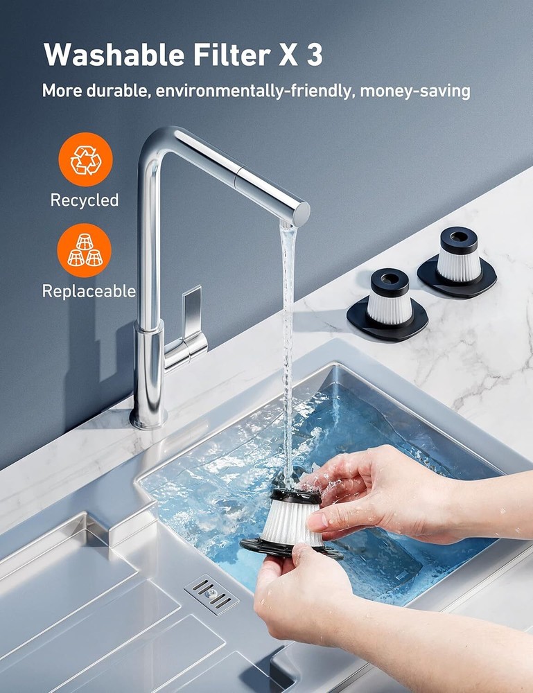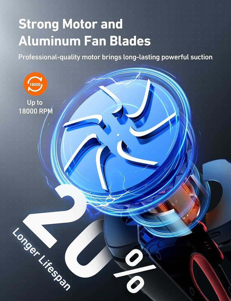 AstroAI Car Vacuum, Accessories, Portable Handheld Vacuum Cleaner Red Product Details Brand: AstroAI Special Feature: Corded Filter Type: Cloth Included Components: Vacuum cleaner, Brush head, Extension tube, Filter brush, Power cord, 3* Filters, Storage bag, Flathead hose Vacuum cleaner, Brush head, Extension tube, Filter brush, Power cord, 3* Filters, Storage bag, Flathead hoseVacuum cleaner, Brush head, Extension tube, Filter brush, Power cord, 3* Filters, Storage bag, Flathead hose See more Is Cordless?: No Surface RecommendationPower Source: Car12V Cigarette Lighter Cord VoltageItem Weight: 12 Volts (DC)1.2 Kilograms Daily Cleaning for Car: A strong motor and upgraded aluminum fan blades deliver 7500PA of suction power. The car vacuum cleaner is designed to quickly clean dry debris on level surfaces; say goodbye to dust and dirt. Coupled with a high-capacity 560ML visible dust cup, the car vacuum can easily clean up lots of dirt and dust. NOTE: The cigarette lighter cord only suitable for DC power of vehicle, please work with converter when connecting to AC power! Super Wide-Angle LED Light: Super wide-angle light provides a clear view, users can easily clean the hairs, crumbs, dust, and waste in the dark, even the dim corners in the seat bottom. The LED light will light up in blue when the power is supplied to remind you of the vacuum cleaners' power status. Washable Filter: The filters and dust cup are washable. Extra 2 filters are attached, easy to replace and clean. Please do not wash the body. Adequate Accessories: Four in one, extra different 3 nozzles to meet various cleaning demands. A 5-meter power cord easily reaches hard-to-clean narrow gaps. Compact Design: Light weight(2.7 pounds), ergonomic design allows you to operate easily with handhold. The storage bag provides full protection for the car vacuum cleaner.