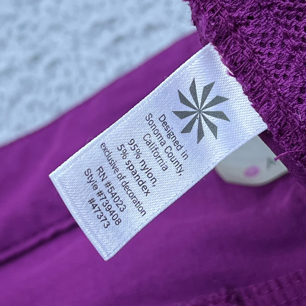 Accents: Button, Zipper Seller Notes: “Good used condition with light wear” Fabric Type: Canvas MPN: 739408 Personalize: No Features: Comfort, Easy Care, Pockets, Stretch Occasion: Casual, Travel Color: Purple Season: Fall, Spring, Summer Vintage: No Department: Women Pocket Type: 5-Pocket Design Size Type: Regular UPC: Does not apply Garment Care: Machine Washable Distressed: No Inseam: 5 in Front Type: Flat Front Performance/Activity: Fishing, Hiking, Walking Style: Utility gtin13: Does not apply Brand: Athleta Model: Dipper Short Material: Nylon, Spandex Closure: Drawstring Fabric Wash: Medium Waist Size: 32 in Rise: Mid (8.5-10.5 in) Pattern: Solid Fit: Athletic Size: 10 Handmade: No Theme: Classic, Colorful, Outdoor, Retro, Sports Character: Athleta