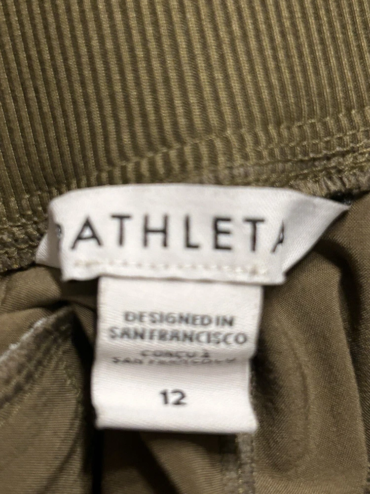 Athleta Brooklyn Mid Rise Ankle Pant, Acacia Olive Pants Size 12 Excellent pre-owned condition Waist across:17” Rise:12” Inseam:28” With ribbed panels at the waist for mobility & comfort, these lightweight pants in our Featherweight Stretch fabric can be dressed up or down as you please. We love them for travel because they don't wrinkle easily." Recycled Polyester/Spandex FEATHERWEIGHT STRETCH™. Silky sleek fabric made from recycled polyester is so lightweight, it feels weightless BREATHABLE. Sweat can travel through the fabric so it can evaporate on the surface WRINKLE-RESISTANT. Packable fabric stays smooth in your bag QUICK-DRYING. Dries in a flash for comfort factor IT FEELS: Ultra-lightweight, silky sleek, stretchy RATED UPF 50+ (Excellent Protection) Machine wash and dry.