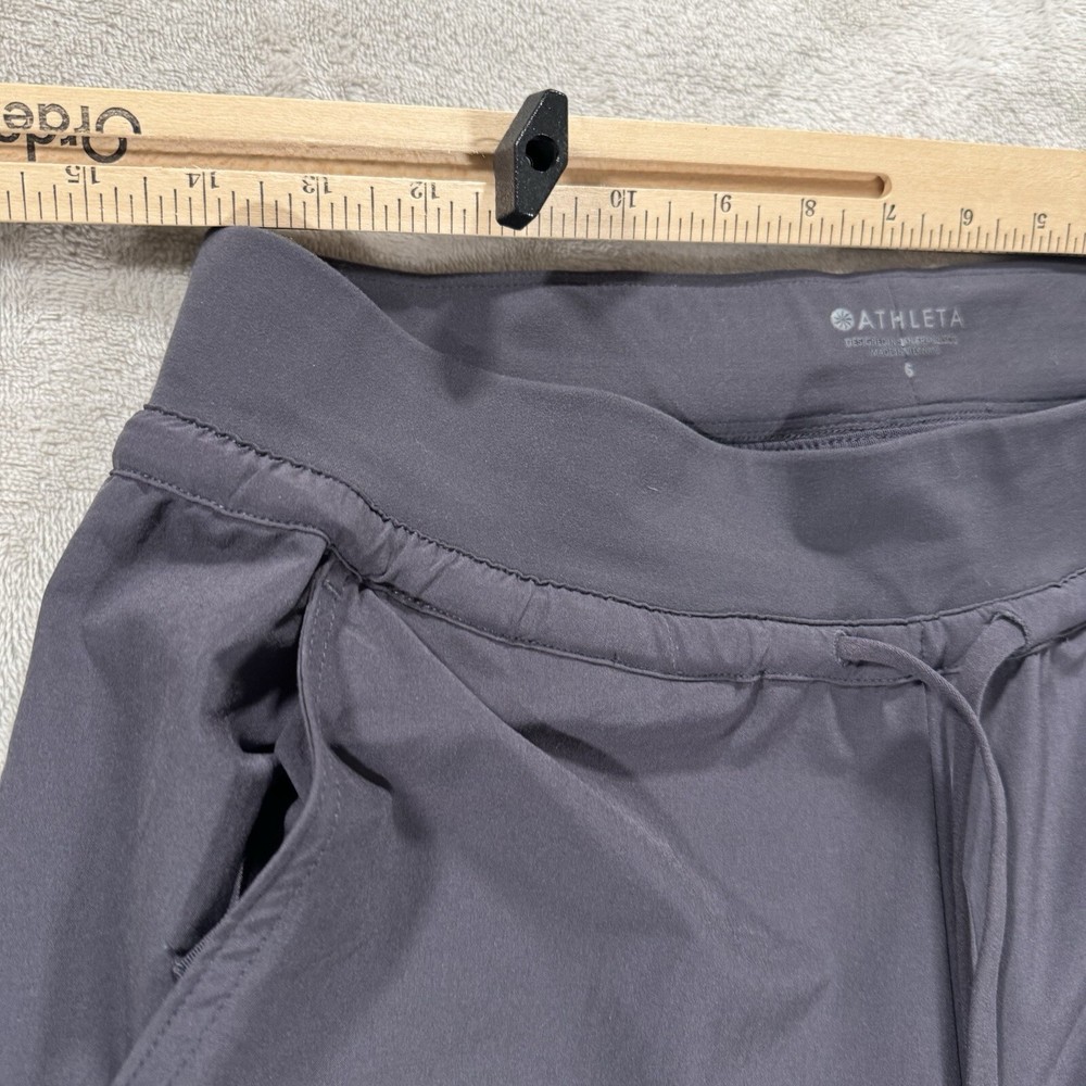 Elevate your athleisure game with these Athleta Women's Salutation Joggers. These versatile joggers boast a spotted pattern in a soft gray color, with a blend of nylon and spandex fabric that provides comfort, stretch, and pockets for convenience. Perfect for travel, activewear, casual or workwear, these joggers have a 27-inch inseam and 26-inch waist size, with a regular fit and tapered leg style. Whether you're hitting the gym and training, doing yoga, or even running and jogging, these joggers have got you covered. They are machine washable, making them easy to care for. With features like compression in the buttocks, thigh, waist, and leg, these joggers provide a comfortable fit that contours to your body shape. Get your hands on these Athleta joggers, perfect for any season, be it winter, summer, fall, or spring, and enjoy a relaxed and stylish day out.