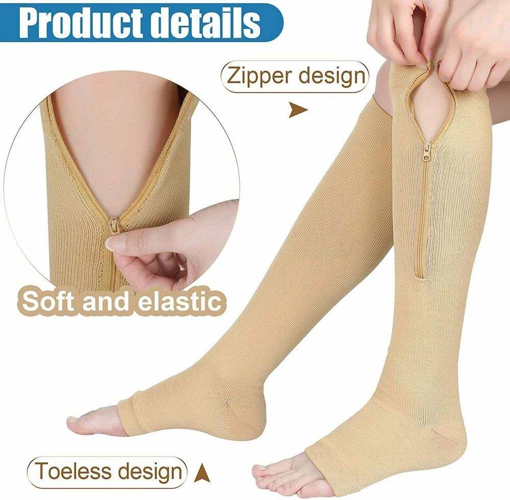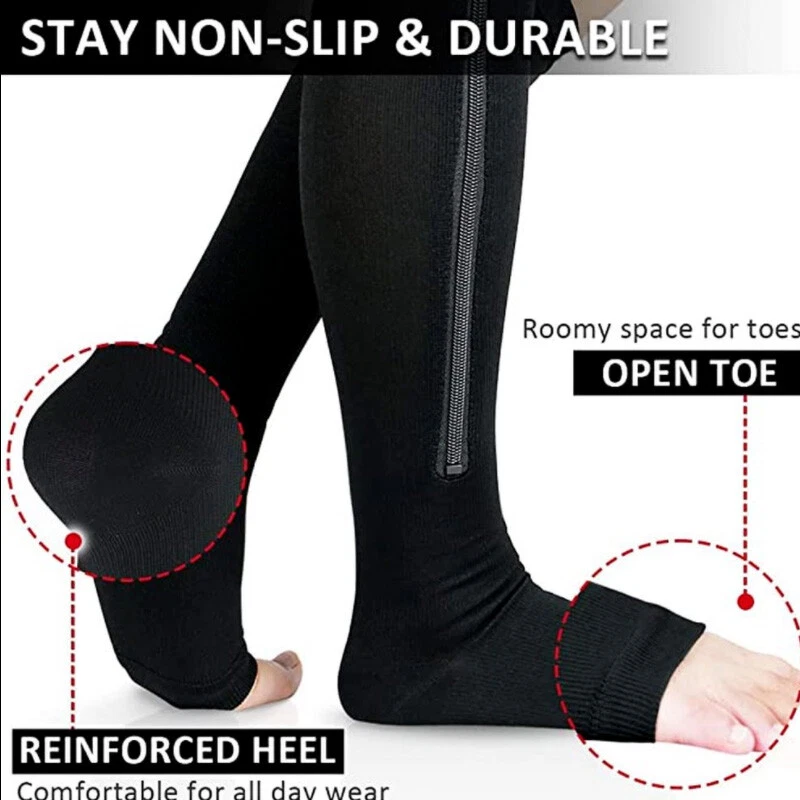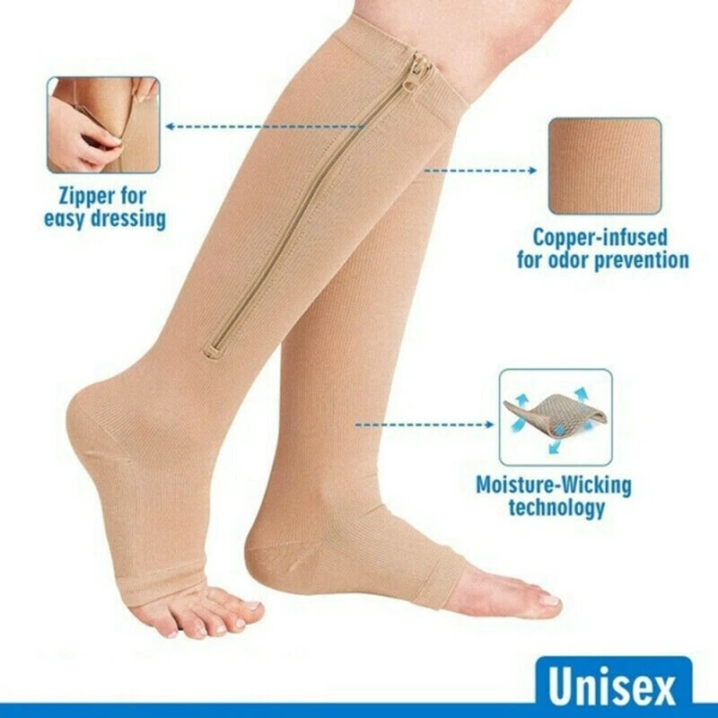 Model: Zip Up Compression Socks Labels & Certifications: Protect from Excessive Moisture, Store Cold, Store Dark, Store Dry Type: Compression Socks/Hose Item Height: High Knee Brand: Unbranded Body Area: Knee, Leg, Ankle Features: Adjustable, Self-Adhesive, With Flexion Texture: Semi-Soft Department: Adult, Men, Unisex, Women, Teenager Intended Use: Leg Brace MPN: Does Not Apply Item Length: Knee High Main Purpose: Arch Support, Compression, Immobilization, Plantar Fasciitis, Stabilization Material: Copper, Polyethylene Theme: Compression Socks, Support Socks, High Knee Sockings, Zip Up Compression Socks, Zipper Compression Socks, Compression Stockings, Calcetines de compresión, Medias de Compression, copper compression socks, medical compression socks, Knee High Stockings, Zipper Sox Gender: Unisex