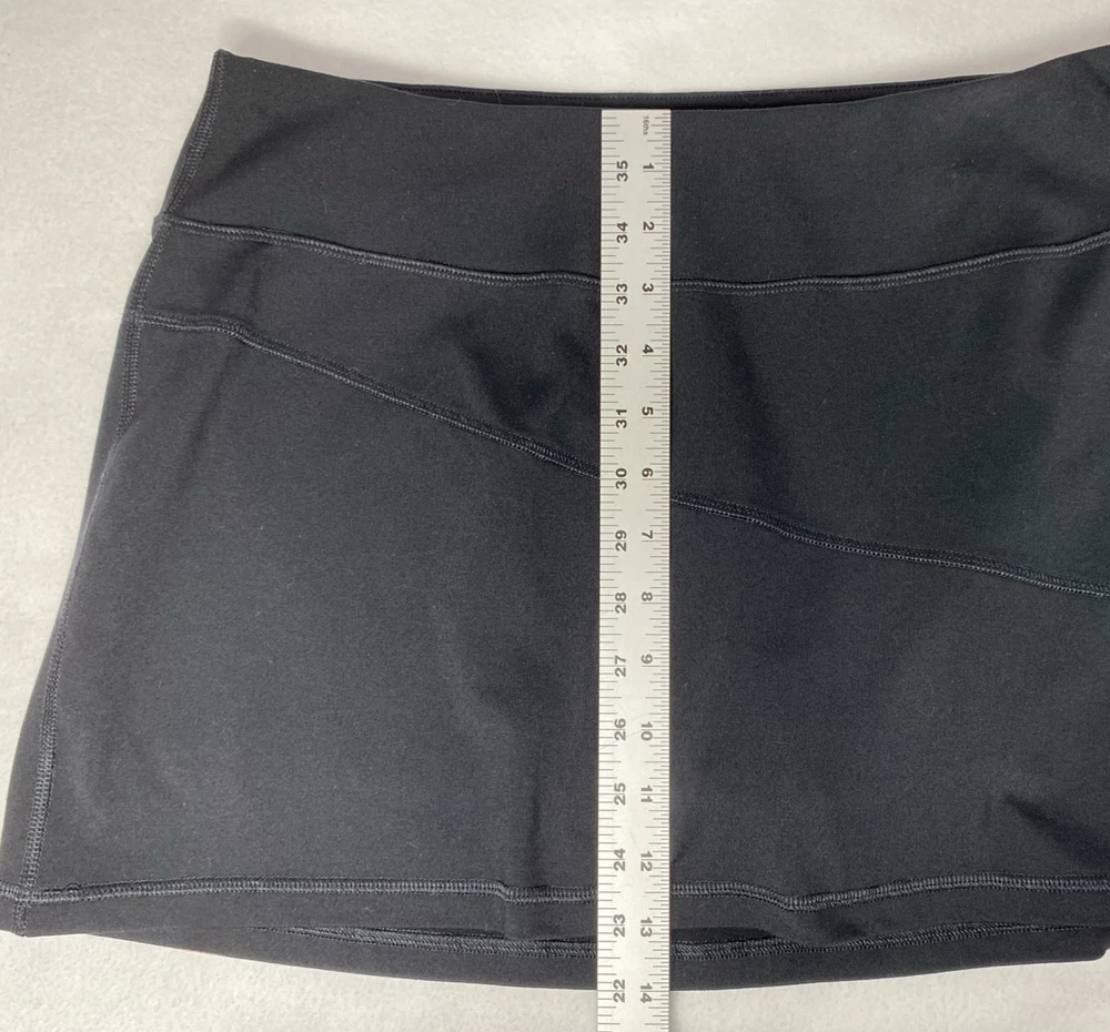 Black women's stretch skort. 92% nylon, 8% polyester. Size L. Measurements shown in photos. From a smoke free, pet free environment.