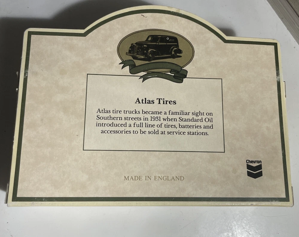 Atlas Tire Truck Standard Oil Company Chevron Die-Cast Metal Replica Toy Car.