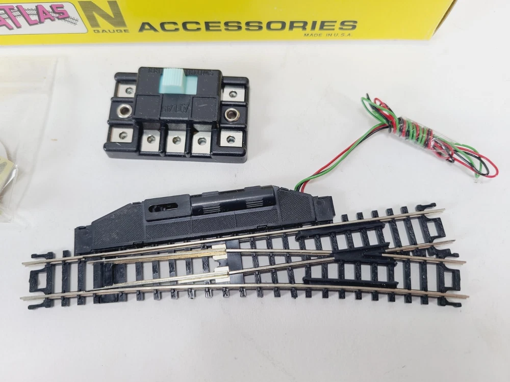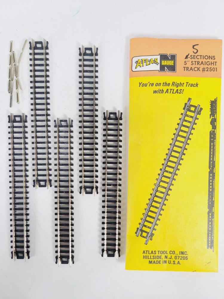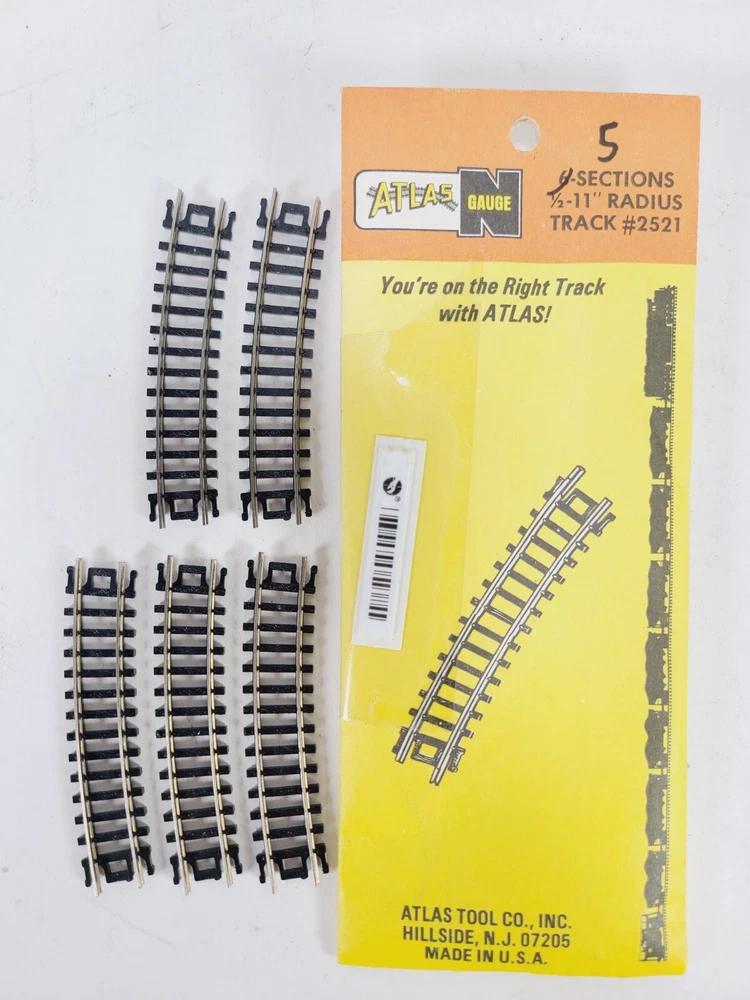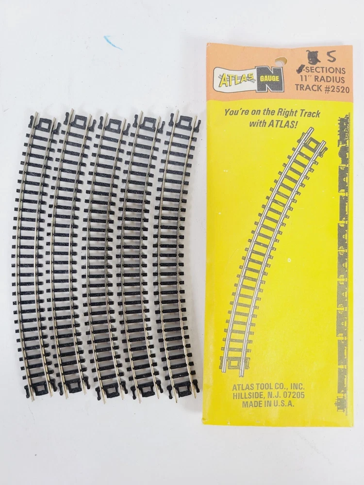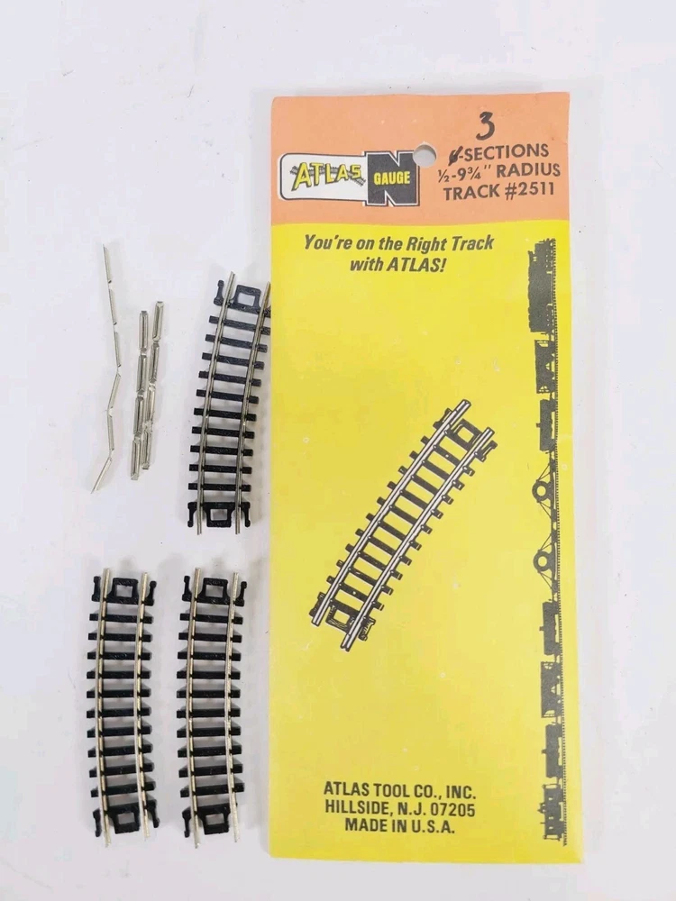 This lot includes: 3 Sections Atlas #2511 1/2 - 9.75" Radius 5 Sections Atlas #2510 9.75" Radius 5 Sections Atlas #2520 11" Radius 5 Sections Atlas #2521 1/2 - 11" Radius 5 Sections Atlas #2501 5" Straight 2 Sections Atlas #2532 Rerailer 1 Atlas Right Remote #2581-1 Switch - Unused but open box Thanks for looking & happy eBaying!