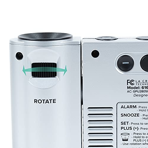 Return Policy Fast Delivery Trusted seller 616-12667-INT Silver Atomic Projection Alarm Clock with Temperature Product Description Projects time, indoor, outdoor temperature, or alternate all on the wall or ceiling; Projection brightness control and 270° arm rotation for proper viewing Atomic time and date (manual set option); Automatically updates for Daylight Saving Time (AUTO/ON/OFF option); 7 Time zones: AST, EST, CST, MST, PST, AKT, HAT 1" time digits; 12/24 Hour mode with 10 minute snooze alarm; Adjustable white backlight (4 levels, plus OFF) with auto dim Monitors Indoor and Wireless Outdoor temperature (°F/°C) with trend arrows; Charge devices with 1 amp USB charging port; Customized calendar: full weekday, day/month/date, alarm time Clock: Requires 5.0V power adapter (optional) 3 AAA Alkaline batteries (not included) for power loss; TX141-Bv3 Wireless Temperature Sensor: 2 AA batteries (not included) Shipping Returns Payment Shipping Shipping is FREE to all addresses other than APO/PO boxes in the lower 48 states. All our stock ships from US-based warehouses. Shipped via USPS or UPS (depending on location and package weight) Unless stated otherwise, all orders will ship within 24-72 hours of your payment being processed. Check our feedback to see the great reviews of FAST shipping we offer. Returns Seller does not accept returns Payment We currently accept payment via eBay managed payments only. Once payment is cleared, we will dispatch your shipment within 1-3 business days. Please refer to the "Shipping" tab for more information regarding shipping speed to your destination.