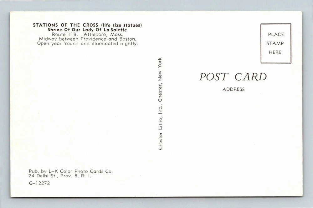 Attleboro MA-Massachusetts, Life Size Statues, Crosses, Shrine Vintage Postcard