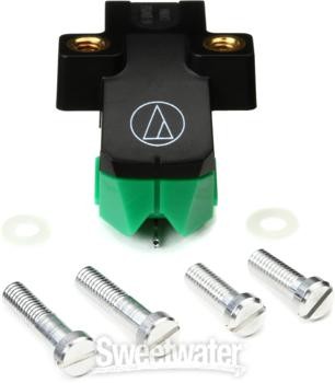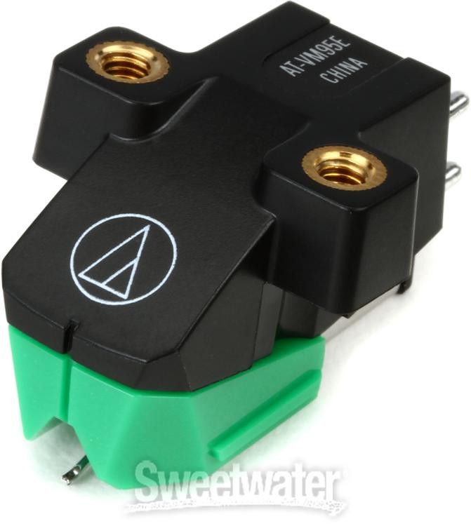 Superior Sonics for Your Favorite Turntable Give your turntable a sonic upgrade, with the Audio-Technica AT-VM95e turntable cartridge. Designed for half-inch-mount turntables, the AT-VM95e delivers powerful output (4mV), impressive channel separation, and ultra-low distortion. Vinyl fans at Sweetwater appreciate the threaded inserts in the cartridge housing, which allow you to mount the cartridge to your headshell with just two screws, no nuts required. Complete with an elliptical stylus with low-wear characteristics, the Audio-Technica AT-VM95e turntable cartridge is a great upgrade for your turntable.Audio-Technica AT-VM95e Turntable Cartridge Features: Turntable cartridge for half-inch-mount turntables Specially-wound coils for superior output (4mV) Rugged design with aluminum cantilever Threaded inserts allow you to mount with just two screws, no nuts required Low-resonance polymer housing Excellent channel separation and low distortion Elliptical stylus can be swapped with any AT-VMN95 replacement stylus Sweetwater is an Authorized Audio-Technica Dealer Genuine New Item Sweetwater's 2-year warranty Audio-Technica AT-VM95e Turntable Cartridge Replacement Turntable Cartridge with Stylus, 1/2" Mount Superior Sonics for Your Favorite Turntable Give your turntable a sonic upgrade, with the Audio-Technica AT-VM95e turntable cartridge. Designed for half-inch-mount turntables, the AT-VM95e delivers powerful output (4mV), impressive channel separation, and ultra-low distortion. Vinyl fans at Sweetwater appreciate the threaded inserts in the cartridge housing, which allow you to mount the cartridge to your headshell with just two screws, no nuts required. Complete with an elliptical stylus with low-wear characteristics, the Audio-Technica AT-VM95e turntable cartridge is a great upgrade for your turntable. Audio-Technica AT-VM95e Turntable Cartridge Features: Turntable cartridge for half-inch-mount turntables Specially-wound coils for superior output (4mV) Rugged design with aluminum cantilever Threaded inserts allow you to mount with just two screws, no nuts required Low-resonance polymer housing Excellent channel separation and low distortion Elliptical stylus can be swapped with any AT-VMN95 replacement stylus Specification Detail Type Cartridge with Stylus Compatibility Half-inch Cartridge Mount, AT-VMN95 Series Styli Material Aluminum Cantilever, Polymer Housing Color Black Cartridge, Green Stylus Dimensions 0.3 x 0.7 mil Weight 6.1 g Cartridge Type Dual Moving Magnet Stylus Shape Elliptical Quantity Single Additional Features Frequency Response: 20Hz-22kHz, Output Voltage: 4.0 mV RETURN INFORMATION We want you to be completely happy with your purchase from Sweetwater. If you are not satisfied with your product, you may return it for a refund of the purchase price within 30 days. If your purchase was eligible for Free Shipping, the shipping cost will be deducted from your credit or refund. Returns must be in the complete and original packaging with all accessories and complete documentation (Owner's Manual, warranty card, quick start guides, etc.), show no signs of wear or use, and include a Return Authorization number or be subject to a restocking fee.
