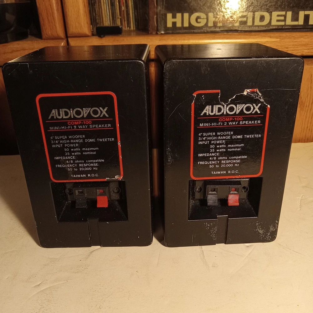 Audiovox Comp-100 Mini HIFI Speakers 4" Woofer X 1" Dome Tweeter Sounds Awsome. Please not this speaker has scratches and some dings. See pictures for condition.