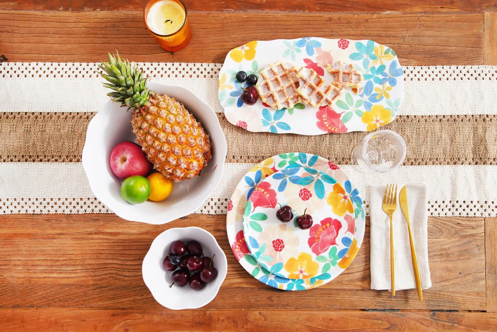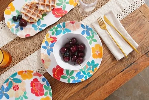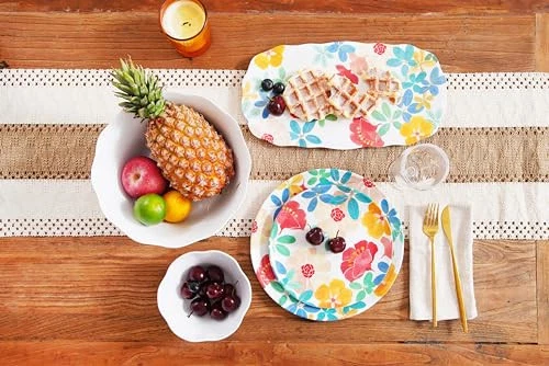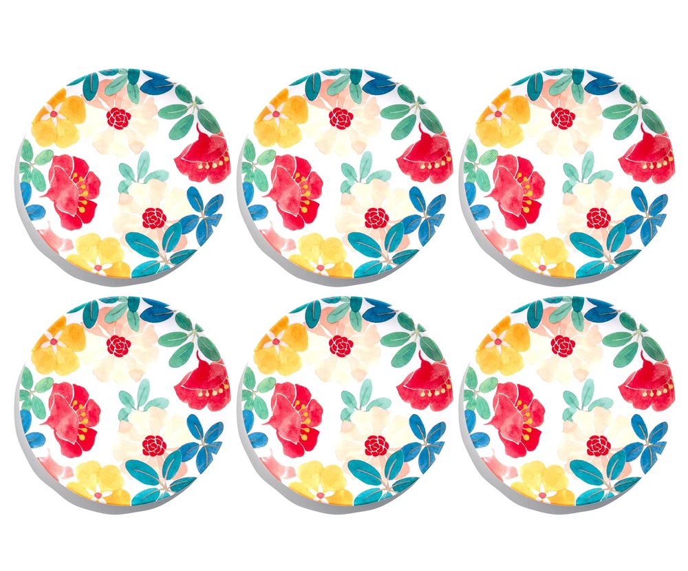 Since 1956, TarHong has been a leading supplier and global distributor of restaurant quality melamine and plastics. With our roots in servicing the hospitality industry, we have set our standards to meet all NSF and FDA requirements and are prop 65 compliant. We focus on quality materials and innovative melamine mold design. Our in-house creative team drives trend and innovation developing collections to provide our retail partners with products that speak to their individual brand standards and deliver newness to the market. TarHong is proud to launch as brand of tabletop, drinkware, kitchen, and pet feeding products. Our vibrant new logo and branding delivers the same fashion driven, trend right products for all your indoor and outdoor entertaining needs. Design is what we are built on; we bring design and color to the home – from casual indoor and outdoor entertaining to kitchen prep, kitchen storage, pet feeding and accessories. Enjoy exploring our vast product offering utilizing different material compositions: melamine dinnerware, durable acrylic and Tritan beverageware, as well as our proprietary plant-based materials, Planta and Merge, along with wheat straw injected polypropylene. All of our products are completely BPA free and easy to care for. They are stackable, durable and dishwasher safe. Welcome the garden to your table with Audrey Floral melamine salad plates where bold blossoms grace your table with colorful flowers and vibrant leaves Includes 6 salad/dessert plates that measure 8.1" diameter; part of Audrey Floral Collection, medium weight melamine Made from high quality 100% melamine with no fillers used. Durable and break resistant. Mimics the look of ceramics or porcelain that maintains a fresh and new look over time. Perfect for indoor, outdoor or pool side entertaining. Easy to use and care for: stackable and dishwasher safe; not suitable for microwave; the perfect alternative to disposable tableware All TarHong products are Food safe, BPA free, Phthalate free, Prop 65 compliant