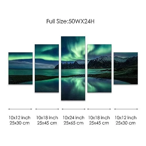 Menu 1. We require immediate payment. 2. We currently accept payment via eBay managed payments only. 3. Once payment is cleared, we will dispatch your shipment within 1-3 business days. Please refer to the "Shipping" tab for more information regarding shipping speed to your destination. Aurora Borealis Wall Art Painting for Office Bedroom Scenery Landscape Canvas Print Framed Picture Northern Lights Poster Artwork Ready to Hang(50Wx24H) Product description 【☛Wall Art Canvas prints Framed Size】:25x30cmx2pcs,25x45cmx2pcs,25x60cmx1pcs 【☛PERFECT GIFT IDEA】:This Product makes a thoughtful and unique gift for anyone who loves nature,Give it as a birthday, Christmas, or housewarming ,Whether for a friend, family member, or significant other, that is sure to be cherished for years to come. 【☛WATERPROOF】:Made with premium canvas and printed with fade-resistant ink, ensuring a long-lasting and vibrant print. Protects the canvas print from water damage, making it suitable for any room in the house including bathrooms and kitchens 【☛Art Decor Made For The House】:A perfect wall decorations paintings for office, bedroom, kitchen, hotel, dining room, bathroom, bar etc. 【☛Professionally Packaged】:we have packaged this art piece with high-quality cartons,and We take great care in packaging our products to ensure they arrive in perfect condition. For any quality problem, you can contact us at any time and we will deal with your problem immediately PLEASE MESSAGE US IF YOU HAVE ANY OTHER QUESTIONS, AND MANY THANKS FOR READING ALL OF THIS. Copyright ©#. All Rights Reserved.