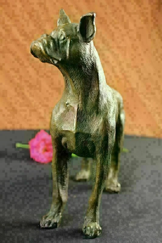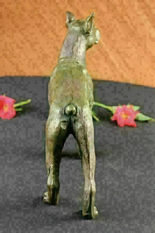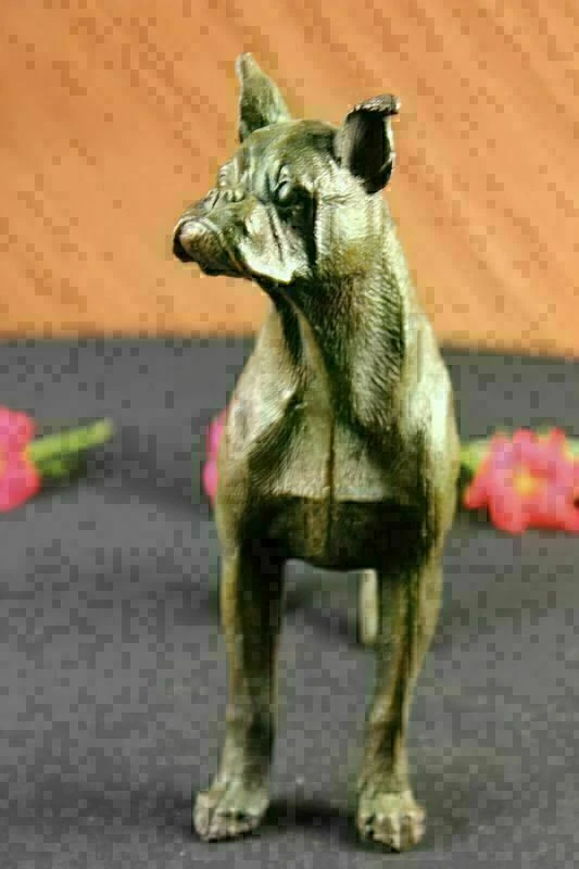 Austrian Cold Painted Bronze Boxer Dog Figure Hot Cast Animal Popular Artwork Austrian Cold Painted Bronze Boxer Dog Figure Hot Cast Animal Popular Artwork Condition : This sculpture is in a perfect condition. Bronze Dimensions: Height 7 1/2" x Width 9" Weight: 5 LBS Inventory: 19DW0642291 This lifelike bronze sculpture of an English bulldog or Boxer embodies the perfect guardian for your front door. With a stocky and powerful build, this canine stands in a wide and vigilant stance, ready to welcome you home after a long day. His large paws and well-defined muscles give him the appearance of an immovable and formidable presence. Despite his imposing figure, this charming sculpture captures the essence of a loyal and lovable pet. The intricate details in his face, expressive eyes, and floppy cheeks make him irresistibly cute. His presence exudes both strength and warmth, showcasing the artist's exceptional craftsmanship. Created by the artist Moigniez, this bronze masterpiece not only serves as a symbol of protection but also as a timeless piece of art. Whether displayed at your front door or in your living space, this sculpture is a testament to the enduring bond between humans and their four-legged companions. Bring home this faithful guardian today and add a touch of canine charm to your surroundings. Boxer Dog Bronze Metal Statue Sculpture Collectible Decor Signed Art 8\" x 9\" DW-064 Video will open in a new window Using the eBay App? Paste link into a browser window: [isdntekvideo] Shipping Terms : Most of our items are shipped via USPS (United States Postal Service) mail or UPS. Most orders are shipped within 24-48 hours of purchase. Please be aware that not all items are available for USPS shipping due to size and weight. We do ship to Hawaii, Alaska, Canada, Puerto Rico, APO/AE, and U.S. Virgin Islands, however, an additional charge may be required. Please contact us before making any purchases in these areas. For Non-USA customers, you may be responsible for all duty, tax, brokerage fees that may be due upon delivery (shipping costs cover freight charges only). We also ship internationally. Please refer to the "Shipping and Handling" chart for the rates for each area. Payment : We accept just about any form of payment. PayPal, Master Card, Visa or American Express credit cards. Money orders, cashiers checks, and even personal or business checks. For governmental institutions, we will also accept a purchase order. Please understand that for personal or business checks we have to wait for the check to clear (usually 7 days) before shipping. Condition : New Detailed Hand Crafted Hot Cast Bronze Satisfaction Guaranteed. This is Stock Photo, Slight Color Variation!! Listing and template services provided by inkFrog