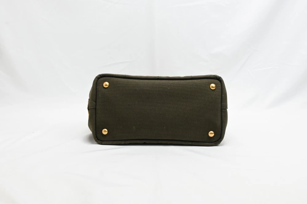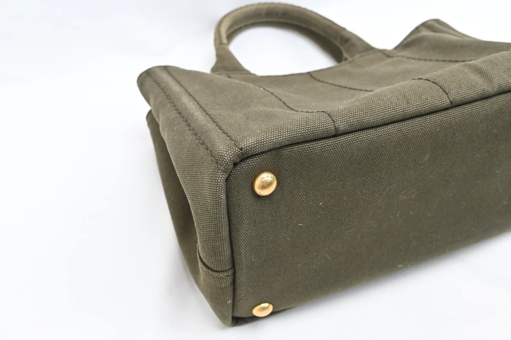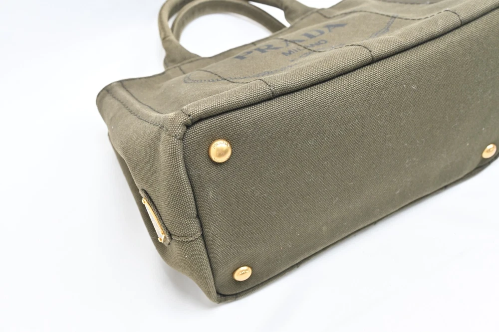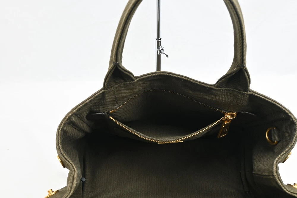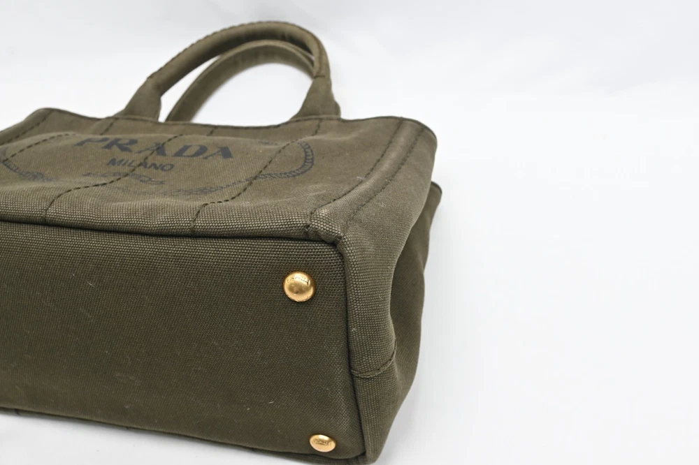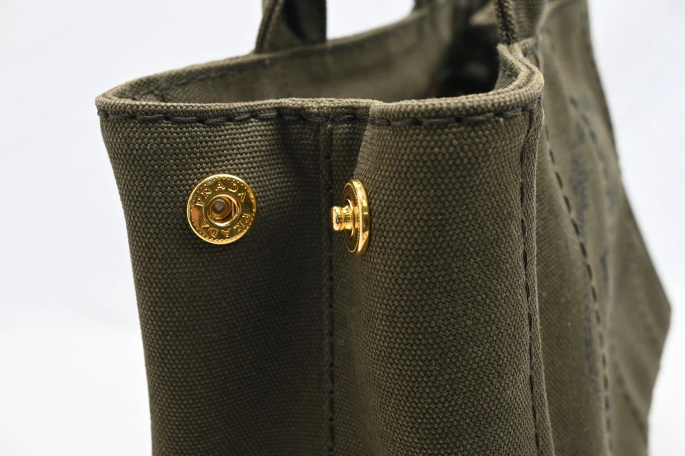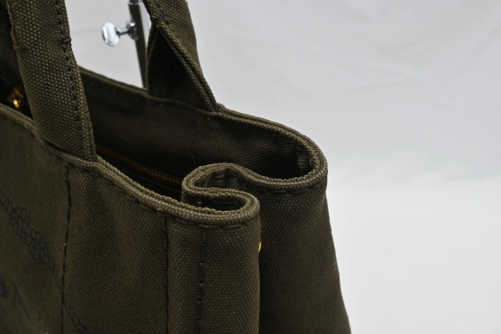 Auth PRADA Canapa BN2439 Khaki Canvas Tote Bag