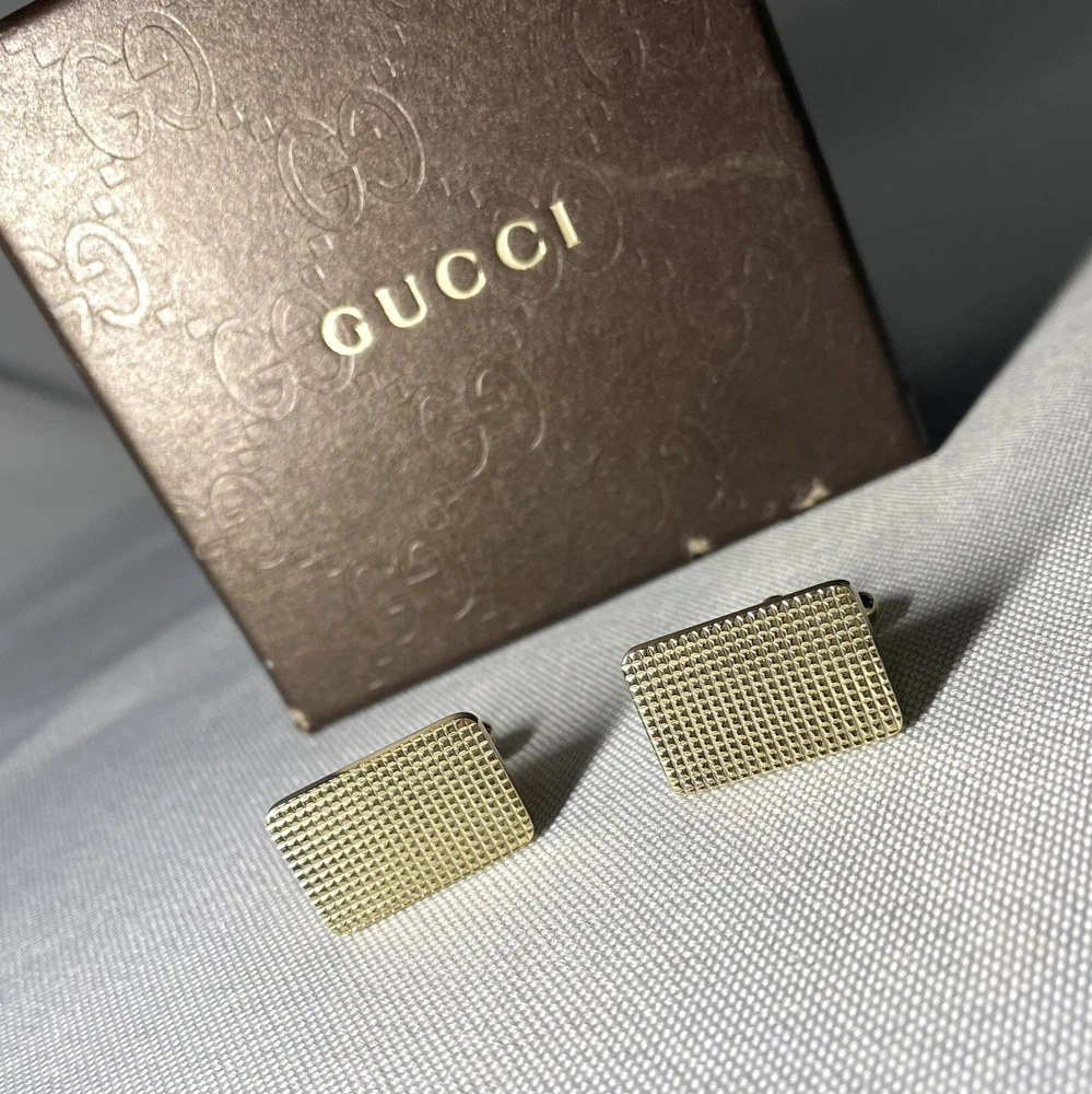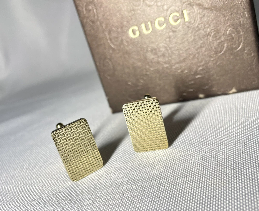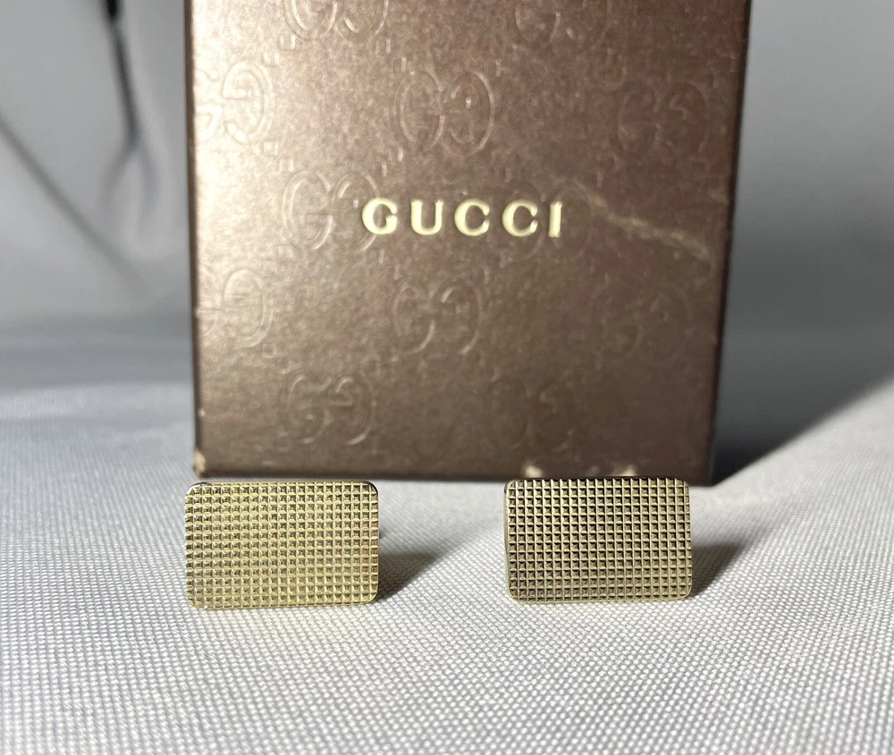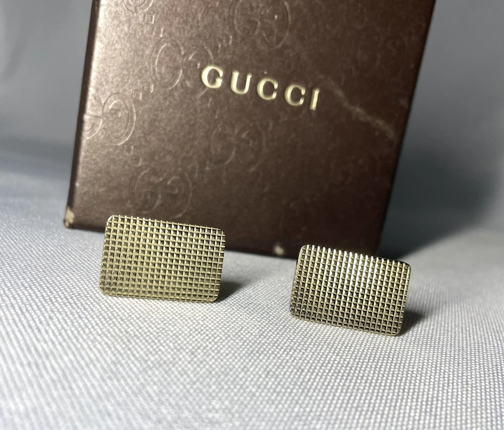 We cannot offer such a large discount as half price, but please feel free to send us your best offer. We will consider it as much as possible. It depends on the time of payment. Basically, we will ship the same day or the next day. (Shipping may be delayed due to business trips or other reasons. In that case, we will contact you by message). I purchased this item several years ago from an online store in Japan. Gucci Pattern Line Square Sterling Silver Gold Cuff Links Very rare model, A rare model that is hard to find on ebay - even on the internet! Many people have been looking for it! Sterling silver shines beautifully from the sleeves, and is truly unique to the luxury brand Gucci! This item only From casual to dress scene This item is useful in a wide range of fields, and will boost the rank of your coordination. A magical one-point item! This item is also a perfect gift for your partner or lover. Color Gold Material SV925 Sterling Silver Size About 2.2 x 1.4 cm (0.866 x 0.551 inches) Weight 8g x 2 Condition: beautiful There is some tarnishing characteristic of silver material, but there is no significant damage or distortion, and the clip is not loose. The condition and luster are both good, and you can use it comfortably. Accessories Genuine box (The genuine box is damaged) We also have many luxury brands such as Gucci different model accessories, Tiffany, Dior, Celine, Yves Saint Laurent, Dunhill, Georg Jensen, Bulgari, Cartier, Chanel, Versace, Montblanc, Ferragamo, etc. Please take a look. We want our buyers to feel comfortable doing business with us.” We take responsibility for every item we sell. We have received many positive comments from buyers who have dealt with us in the past. We have received these positive comments from our buyers Excellent seller. Communication went well. Even though I came to the US from Japan, I was told the item arrived quickly and in time for a special birthday. High quality product! Highly recommended! ++++++ Great seller! Very fast response and accurate product descriptions. Highly recommend! Very popular seller and easy to deal with. Cufflinks were mint quality. I would do business with him again if the opportunity arises. I also give TKU to the A+++ seller who delivered a beautiful PC with careful packaging and safe and amazingly fast delivery. I am thrilled with the rich quality look and feel of the metalwork. It is like new and perfect in every way. The TKU to the seller was also a solid and clear communication from start to finish, leading to a wonderfully positive transaction. We have received many positive comments about the above statement and we are confident that you will be satisfied with our service. Of course, you can rest assured that all the products we sell are genuine. We sincerely look forward to doing business with you again!
