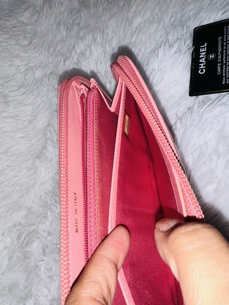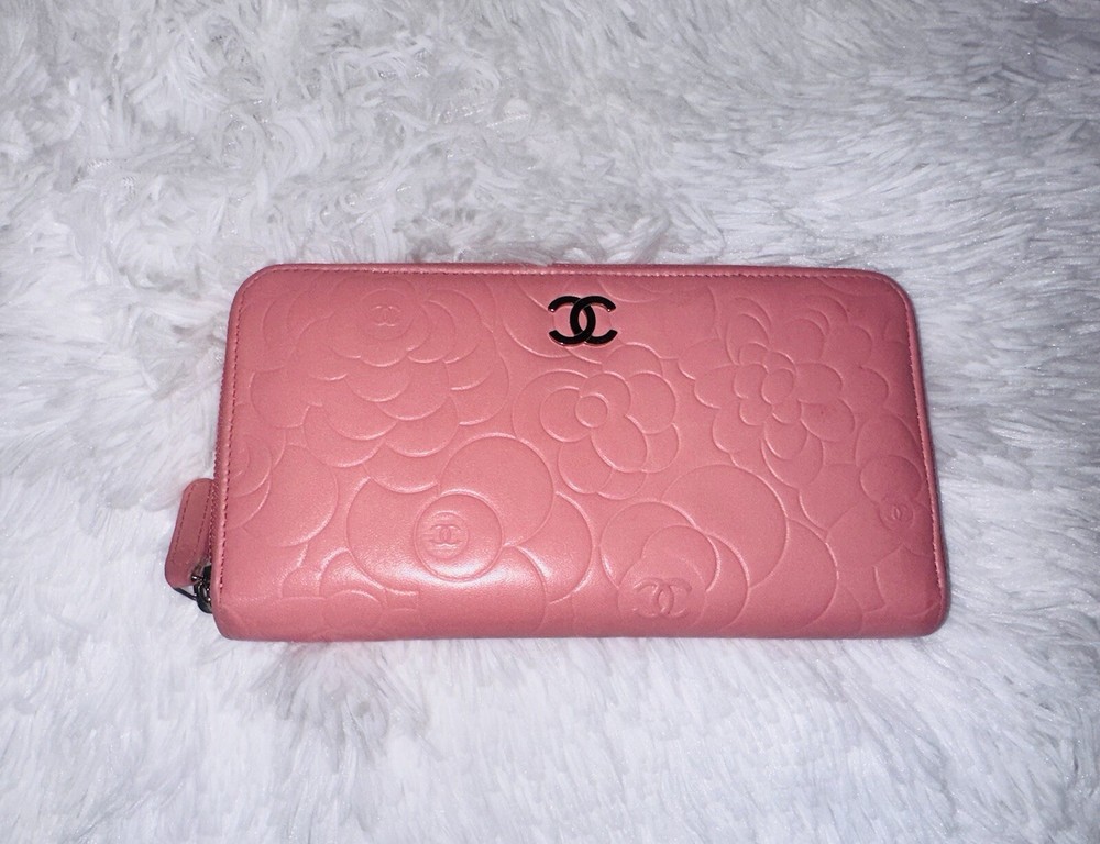 Authentic CHANEL Camellia Pink Lambskin Long Wallet
