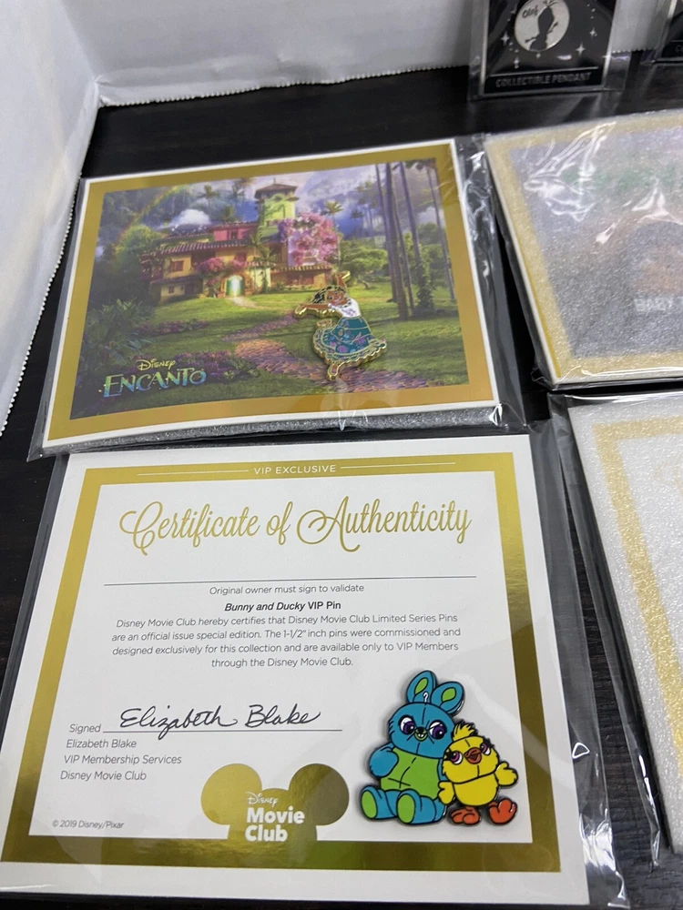 Immerse yourself in the magic of Disney with this exclusive lot of 6 Disney Movie Club (DMC) VIP pins, each accompanied by a charming pendant featuring beloved characters Groot and Buzz Lightyear. These pins are a must-have for collectors and fans, showcasing an array of vibrant designs inspired by the enchanting world of Frozen and the creativity of Pixar. Each piece in this collection stands out with its unique theme and high-quality craftsmanship, emblematic of the contemporary Disney era (1968-Now). Though the country of origin remains a mystery, the allure of these pins is undeniable, making them a prized addition to any Disneyana enthusiast's treasury.