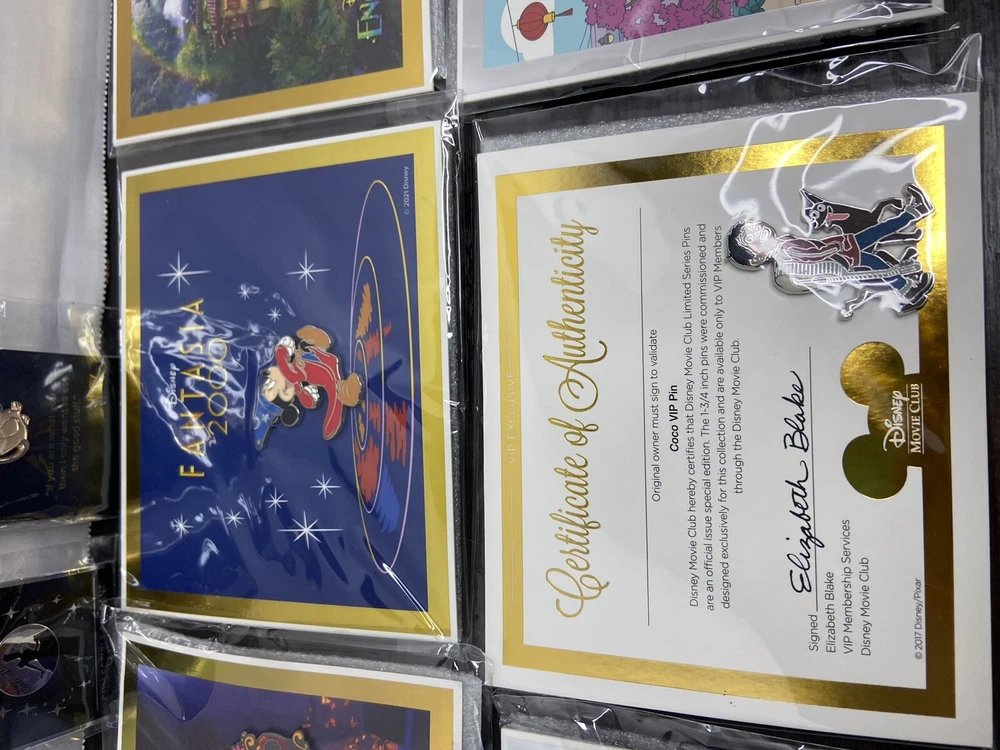 Enhance your Disney collection with this exclusive lot of 6 Disney Movie Club VIP pins, featuring beloved characters like Mickey, Buzz, and more. These pins are a must-have for any Disney enthusiast and are perfect to add to your pin trading collection or to display proudly on your jacket or backpack. Each pin showcases a unique design inspired by the magic of Disney movies and is made with high-quality materials to ensure long-lasting durability. Add a touch of Disney magic to your life with these authentic pins, ideal for fans of all ages.