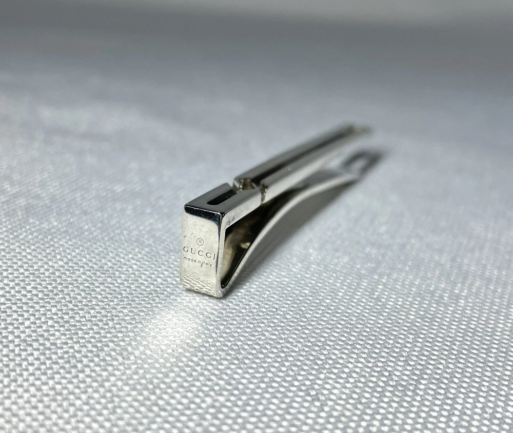 We cannot offer a substantial discount like half price, but please feel free to send us your best offer. Please feel free to send us your best offer, as we will consider it whenever possible. It depends on the payment period, We usually ship the same day or the next day. (Shipping may be delayed due to business trips, etc. In such cases, we will contact you by message. In that case, we will contact you via message.) I bought this item last year at a store in Japan. Gucci Interlocking Knot GG x Center Open Tie Pin Tie Clip Sterling Silver The latest model of Gucci! The sense of superiority that only the latest model can offer is exceptional. The casual accessory style instantly captivates the viewer! This item only From casual to dressy occasions It is useful in a wide range of fields, and can be used to upgrade the ranks of your coordination. Suitable for everything from suits to private use. Magical one-point item You can also use it as a money clip by inserting a bill. Please take advantage of this opportunity! Color silver Material SV925 sterling silver Size Approximately 6 x 0.5 cm (2.362 x 0.196 inches) Weight 8g Condition There are tarnish peculiar to silver material and minor scratches on the back part due to wear, but there is no noticeable damage or clip opening. The surface when worn is clean and in good condition and shine! Accessories: genuine box, genuine storage bag, genuine instruction manual Please take a look at our other Gucci accessories, Tiffany, Burberry, Dior, Dunhill, Versace, Saint Laurent, Bvlgari, Cartier, Montblanc, and many other luxury brands. "To ensure that our buyers can do business with us with peace of mind." We take responsibility for every item we sell. We are very proud of our buyers who have done business with us. We have received such great positive feedback. Excellent seller. Communication went well. Even though I came to the US from Japan, I was told the items arrived quickly and in time for my particular birthday. Some high quality products! Highly recommended! ++++++ Great seller! Very responsive and accurate product descriptions. Highly recommend! The seller is very responsive and reliable. The cufflinks were mint quality. I would be happy to accommodate. Oh, and her TKU to the A+++ seller who provided a beautiful PC with careful packaging and safe and surprisingly fast delivery. I was thrilled with the rich quality look and feel of the metalwork, it looks and feels like new and is perfect in every way, and the solid and clear communication with the TKU seller from start to finish made the transaction even better. We have received many comments regarding the above statement, and we are confident that you will be happy with your purchase. Of course, please be assured that all the products we sell are genuine. We sincerely look forward to doing business with you again! Translated with DeepL.com (free version)