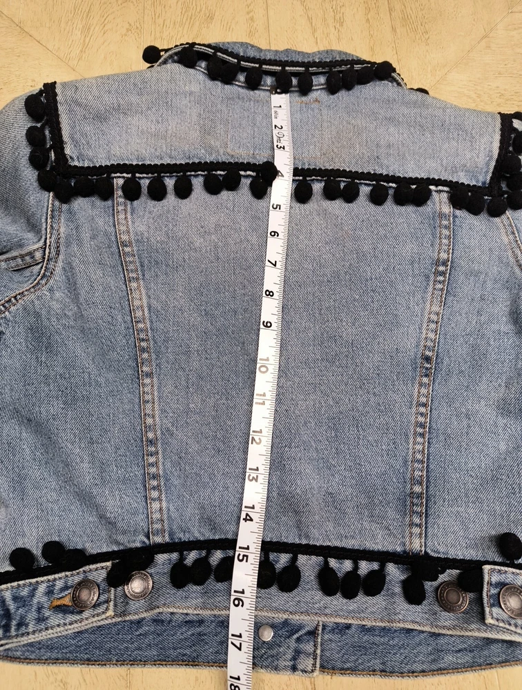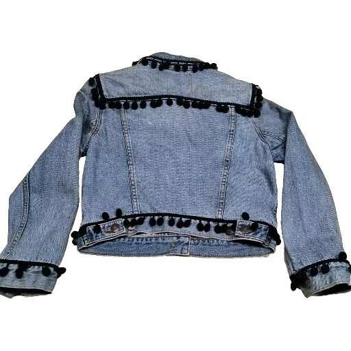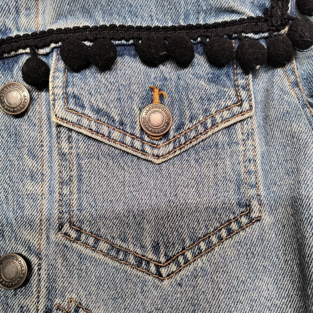Amazing Marc Jacobs denim jacket. Embellished on all the seams with black pom pom tassels. Size small and the wash is Vintage indigo. I bought this new jacket many years ago. I literally wore it once and put it in my closet. It hasn't been out since. Pretty sure I bought this over 20 years ago. It was kept in a garment bag so it's mine and fresh and clean.