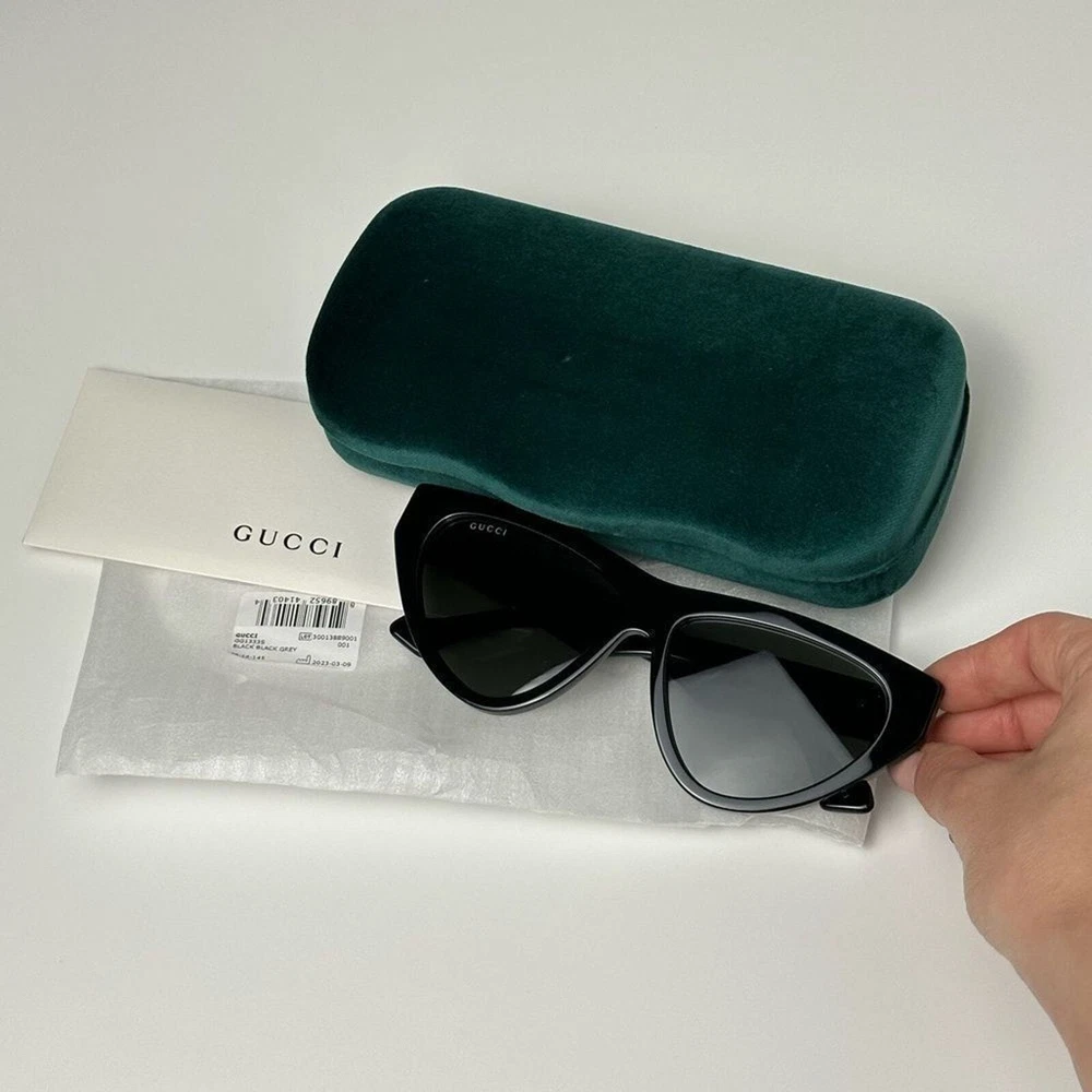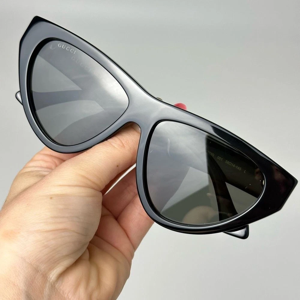 AUTHENTIC GUCCI SUNGLASSES DETAILS GUCCI GG1333S Frame Color: Black 001 Front Color: Black Temple Color: BLACK Lens Color: GREY Polarized Lens: No Lens Material: BIO NYLON Prescription Capable: No Gender: Women's Lens Width: 58 Bridge Width: 14 Arm Length: 145 Made in Italy Comes with original packaging and all accessories
