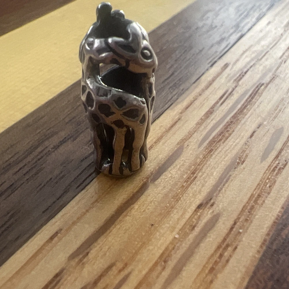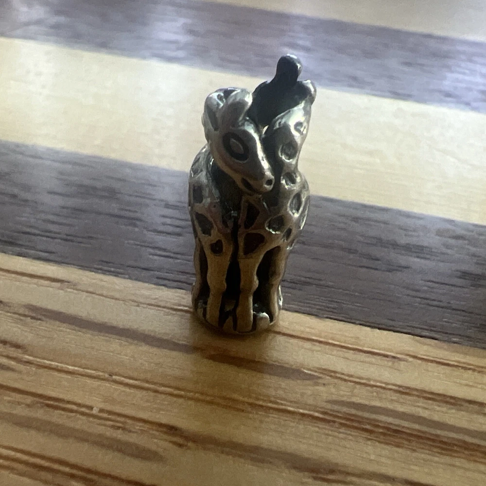 Enhance your jewelry collection with this authentic Trollbeads giraffe charm, model #11240. Made of high-quality 925 silver, this retired bead is a great addition to any bracelet or necklace. The bead's silver color and beaded style make it a versatile piece that can be paired with any outfit. This Trollbeads giraffe charm is perfect for those who love unique and stylish jewelry. Its charm type is a bead and it is made of silver metal. It is a great choice for those who are looking for a retired bead to add to their collection.