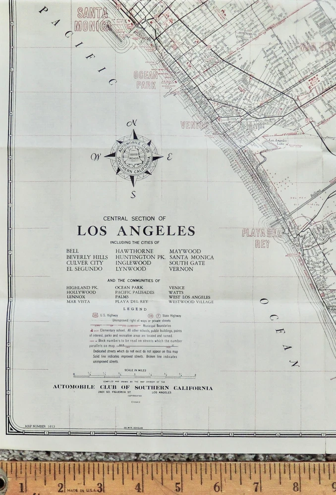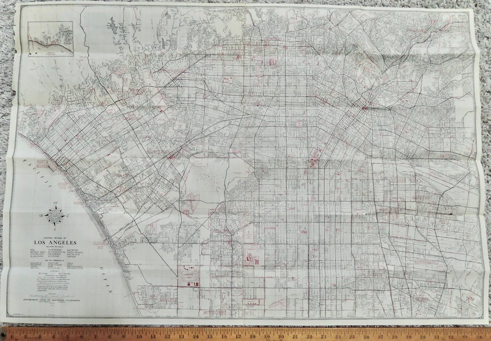 At 78 I’m a retired teacher who was also an antique dealer now beginning to clean out his stock of stored treasures which includes a couple of maps of California. I discovered that the Auto Club of Southern California was founded in 1900 in Los Angeles, but I could not find a date on this map. I suspect someone more familiar with the city might be able to pinpoint it based on the communities identified. The map does have some archival tape reinforcing fold tears but they are hardly visible. Buyer to pay $5 shipping within the U.S. Happy to combine shipping on multiple purchases. Due to ebay policies, I have a “no returns” policy, so look closely at photos and ask questions first. Please click on “See Other Items” for more antiques and other oddball collectibles.