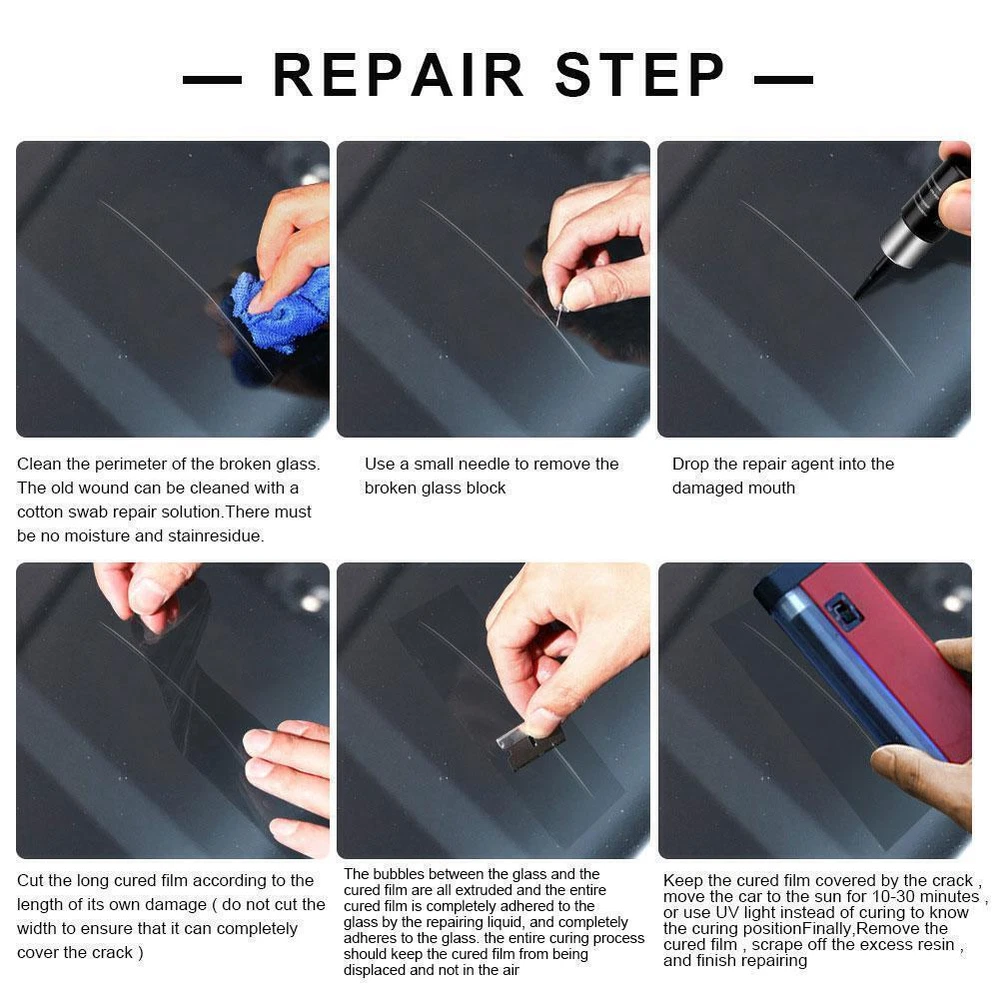 Description Description&Preview shipping&policy Description: how to use: Step 1: Clean and dry the damaged glass surface. Step Two: Inject glass repair fluid into the cracked area. Step 3: Spread the cured film over the crack. Step 4: Scrape off excess glue Package Included: • 1 * Restoration Resin • 1 * with scraper • 1 * curing strip Preview: Thank you for your purchase Problems? You can follow below process to contact us. There is a time zone difference,but we will do our best to quickly response to your questions: Shipping ● We will arrange shipping for you within 24 Hours after payment cleared except the holidays. ● We always send the item to the address you give us on Payoneer to ensure the security of the item. If you have changed your address, or want us to ship to another address, please change to the new address when you pay us with Payoneer, otherwise we will not be responsible if the package is lost. Payments We accepts Payoneer only If you have any questions about the payment,please contact us through eBay message. Import Duties In case some duty is due Upon delivery, it is your responsibility to meet that expense and this may cause delays to delivery schedule and you may have to pickup goods at the customs office. Terms & Conditions By bidding on this item,the Buyer agrees to all of the terms and conditions as outlined in this listing .please ensure to read and agree to All eBay terms and Conditions before bidding. All pictures are for illustration purpose only and Colours may vary slightly. Our store obeys all eBay Rules and Policies. Returns Policy To Return an item you must contact us and take photos of your item to clearly show any damage or unusual aspects of it. Approved returns will be subject to inspection on arrival. Items must be returned in original condition with all original packaging. All shipping and handing charges are non-refundable Return delivery costs are the responsibility of the buyer. We will cover the cost if sending replacement/repaired items. Within 7 days after receiving your products, we offers a no-hassle 7 day exchange/replace only if your items are found to be defective by manufacturer.