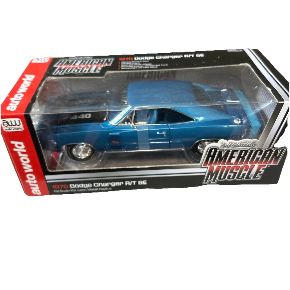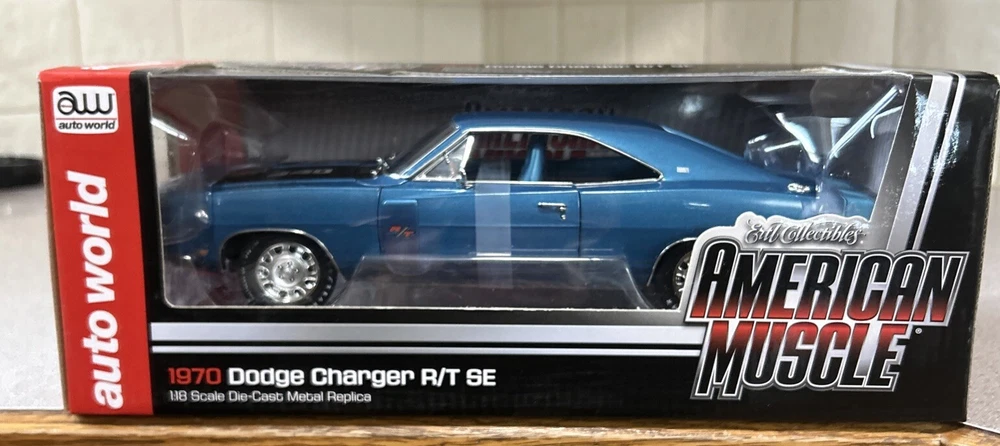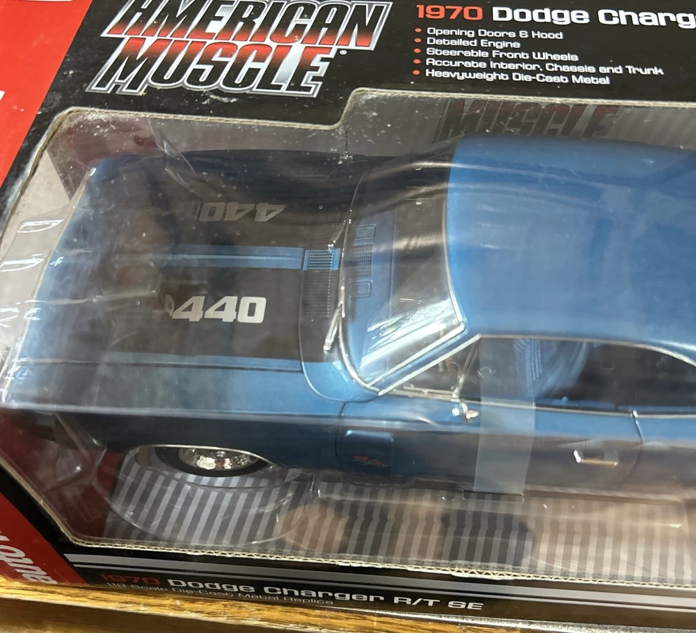 Diecast collectible Ertl American muscle 1970 dodge charger R/T SE 440 license plate rare package. Item # Amm980. #0061