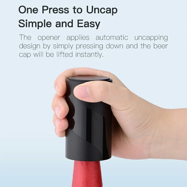 SAFE & SECURE SHOPPING 100% SATISFACTION GUARANTEED FAST SHIPPING Automatic Beer Opener Bar Creative Gadget Push Wine Beer Cocktail Bottle Opener Product Description If you have any questions, please contact customer service first, do not open disputes easily, thank you! Description: Perfect for gifts: this automatic bottle opener is the perfect "cool gadget" gift for beer lovers, home bartenders, craft beer lovers or bottle cap collectors. This bottle opener also has the perfect bottom size! 1. Mini size, easy to carry 2. Put it on the top of the corkscrew and push it down to let your bottle open immediately 3. In addition to beer, it can also be used for other tooth-shaped bottle caps 4. The magnetic function holds the cover in place Specification: Weight: 70g Product size: φ48×83mm Main material: ABS, PC Scope of application: wine bottles with an outer diameter of 29±0.3mm The package includes: 1*Beer opener About Us About Us We accept all payments authorized by eBay. Copyright © 2022 Tongtool