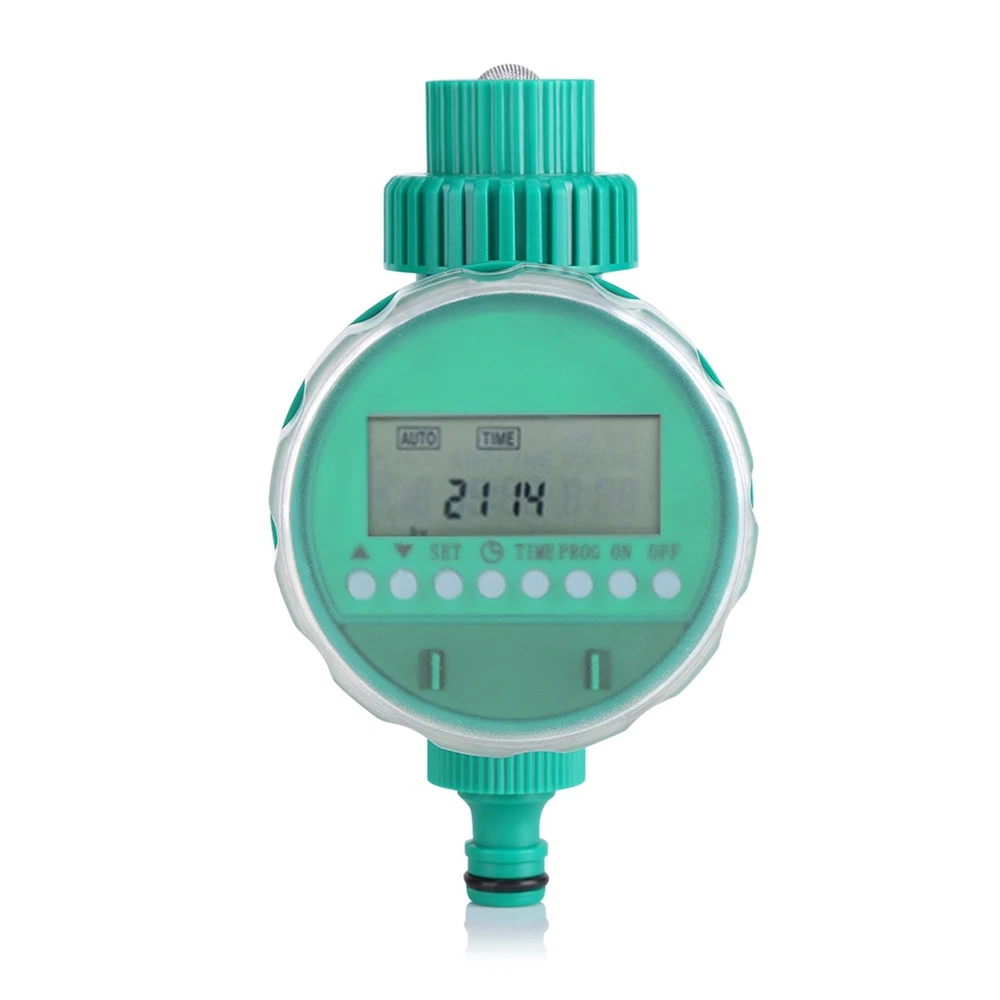 Description: Watering a large area of plant everyday is really tiring. This automatic electronic irrigation timer is of great use for watering home garden planting especially suitable for the people are not at home or too busy to take care of their family garden. Mainly adopts quality plastic, high quality and durable. Intelligent flowers watering timer, the standard clock, you can set the watering for your garden when you are not at home. Very practical and can be applied in your home garden, roof garden, lawn, balcony, courtyard etc. With this irrigation, you can now maximize the efficiency of your irrigation system. Practical product at good price, worth buying. Features: Automatic & intelligent: with a timer, you only need to press the buttons to set the irrigation and it will water the plants on. Multi-functional LCD screen: displays day of the week, hour, minute and programming for easy reference; buttons for easy setting and re-setting. User-friendly: 16 groups of watering can be set per day at most; different programs for your special demands: single and multi program, regular and cycle, program of one day or several days. Versatile use: suitable for the control of irrigation systems in the domestic sector, such as lawn sprinkler, sprinklers, greenhouse and more. Battery powered: only 2 AAA batteries required; not tethered to socket, you can use it any corner in your garden. Specification: Condition: Brand New Material: ABS Color: Green as Picture Batteries: 2 x AAA batteries ( Not included ) Suitable Water Pressure: 0-400KPA Irrigation: shortest 1 min, longest 9 hours 59 min Irrigation Frequency: at least once a day, up to 16 times, and the longest for two days Product Size: Approx. 162 x 86mm / 6.38 x 3.39inch Package Weight: Approx. 280g Package Included: 1 x Irrigation Timer 1 x User Manual Note: 1. Please allow 0-1inch error due to manual measurement. Thanks for your understanding. 2. Monitors are not calibrated same, item color displayed in photos may be showing slightly different from the real object. Please take the real one as standard.
