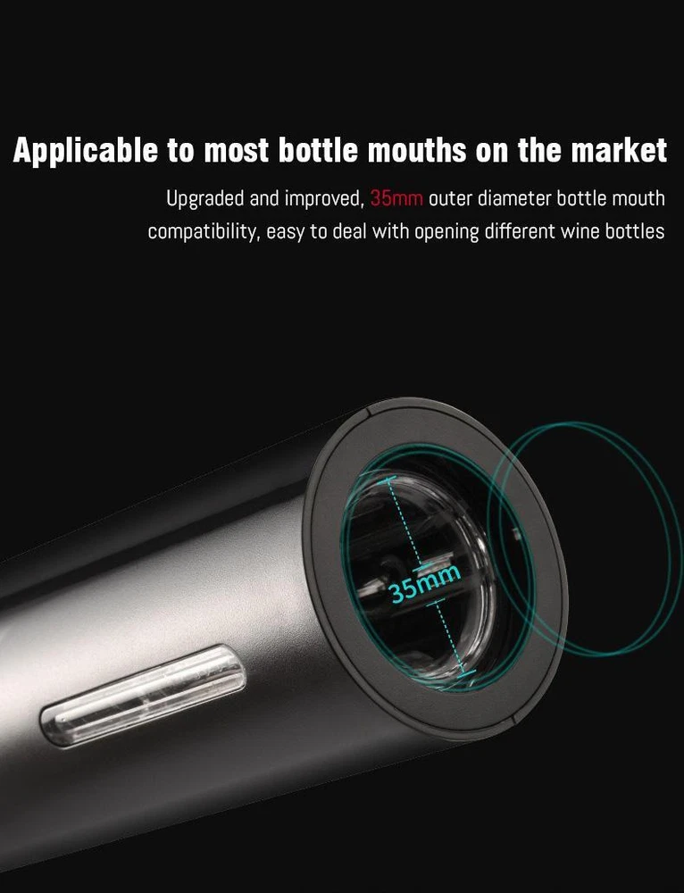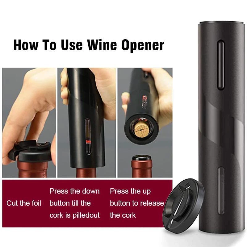 FREE SHIPPING 30 DAYS RETURN EASY PAYMENT Automatic Electric Wine Openers for Beer USB Rechargeable Beer Bottle Openers Co Features: Shining color and fashion appearance, for party, wedding, and home use Fits most standard wine bottle sizes Open the wine in 6 - 8 seconds Compatible with rechargeable battery and4*AA alkaline battery ( not included ) Transparent corkscrew cover to watch the stopper out Food-grade screw, safe and durable Easy operating buttons to push and pull the cork Aluminum alloy housing and ABS transparent screw cover Less than 75dB low working noise Specifications: Material: ABS Size: 215*48mm Color: Black Battery Package Include: 1 x Electric Wine Opener(Not Included Battery) 1 x Foil Cutter 1 x Chinese and English User Manual Rechargeable Package Include: 1 x Electric Wine Opener 1 x Foil Cutter 1 x USB Cable 1 x Chinese and English User Manual Battery Set Package Include: 1 x Electric Wine Opener(Not Included Battery) 1 x Foil Cutter 1 x Wine Stopper 1 x Wine Pourer 1 x Chinese and English User Manual Rechargeable Set Package Include: 1 x Electric Wine Opener 1 x Foil Cutter 1 x Wine Stopper 1 x Wine Pourer 1 x USB Cable 1 x Chinese and English User Manual Note: 1.Please allow slight deviation for the measurement. 2.Due to the light and screen difference, the item's color may be slightly different from the pictures,thanks for understanding. We accept the //customization. 1. enough stock, factory Outlet. 2. Priority delivery, order processing within 48 hours. 3. fast Logistics 15-25days . 4. USA/CA /RU / ES / CZ /FR /PL have local . Faster delivery! 5. NOT include a receipt or an invoice. 6. If you need customization any LOGO or Other,please leave a message to us.(above 50PCS) Any questions, please feel free to contact us. Reply within 24 hours REVIEWS The product came very well packaged. I'm very happy. thank you for everything. Seller strongly recommended. This is great! I definitely recommend! Product looks amazing Delivery was fast. Excellent seller, great communication. I advise everyone