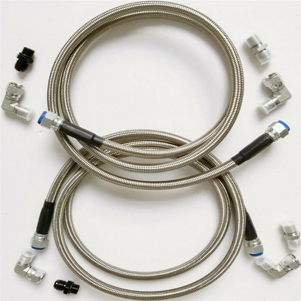 Automatic Transmission Cooler Line Kit -6AN Fiber Braided with Flexible Hoses Fittings GM 4L60E 4L65E Item Description: Fiber & SS braided transmission hoses/ lines, with Stainless Steel Wire used in Middle Layer; ID 3/8" hoses are about 55" & 58” long respectively with AN-6 inverted flare ends. Package Includes: (2) Inner diameter 3/8” hoses with around 55" & 58” length respectively; (4)90 degree adapters/fittings; (2) 1/4” NPS to -6AN transmission fittings; (2) 1/4” NPT to -6AN radiator fittings. Please check pictures for more details. Please check Radiator fitting sizes prior to ordering since some fittings sizes are differ from above listed ones. Thank you! We'll provide extra fittings if needed.