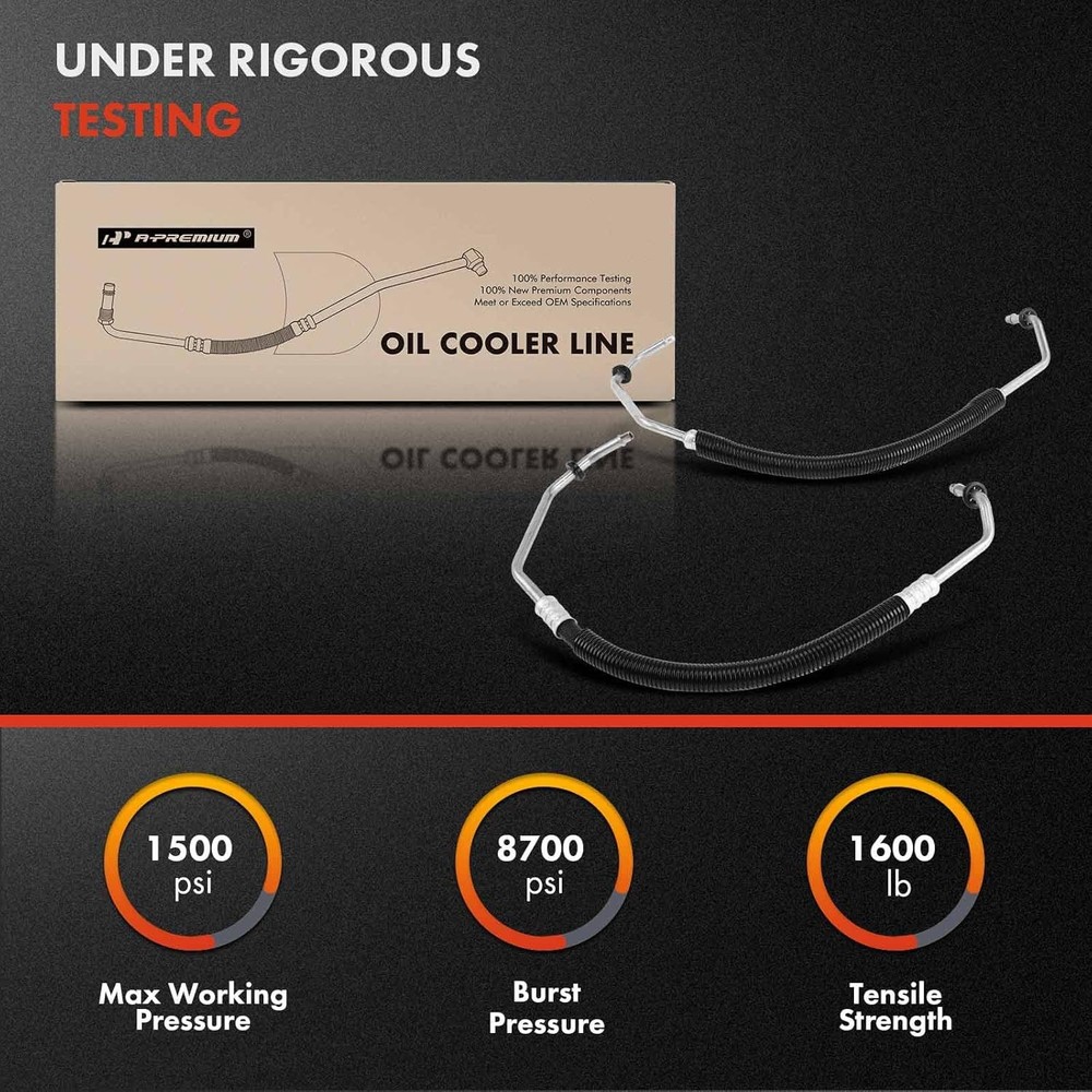 Automatic Transmission Oil Cooler Line Hose Assembly Compatible with Dodge Grand Caravan 2008-2019 & Chrysler Town & Country 2008-2016 & Ram C/V 2012-2015, 3.6L 3.8L 4.0L [Vehicle Fitment-1]: Compatible with Chrysler Town & Country 2011-2016 V6 3.6L, Town & Country 2008-2010 V6 3.8L/V6 4.0L; Compatible with Dodge Grand Caravan 2011-2017 V6 3.6L, Grand Caravan 2008-2010 V6 3.8L/V6 4.0L---Pressure and Return; 6 Speed Transmission [Vehicle Fitment-2]: Compatible with Dodge Grand Caravan 2018-2019 V6 3.6L; Compatible with Ram C/V 2012-2015 V6 3.6L---Inlet and Outlet [Reference Number]: The A-Premium automatic transmission oil cooler line's reference number: 5005204AA, 5005204AC, 5005204AD, 5005204AE, 5005204AF, 5005204AG, 5005205AA, 52014764AA, 624-284, 624284. Before placing an order, verify that the part is compatible with your vehicle using the compatibility system. [Specification]: This oil cooler has a total length of 24 inches and is made of sturdy, corrosion-resistant materials for reliable, leak-free performance Shipping USA-Based! Fast & Free Shipping Daily. Customer Satisfaction Guaranteed. Orders to U.S. territories (PR, AK, HI, GU, VI, Overseas) require you to contact us first to ensure we can ship to your location. Return We accept returns that are reported within seven (7) days, provided items are unused and in original packaging; otherwise, restocking fees or claim rejection may apply. Payment We accept PayPal and All Major Credit Cards. We strive to ensure your satisfaction and are happy to resolve any issues. Please visit our eBay store to check out other items for sale! Thank you for shopping at our store.