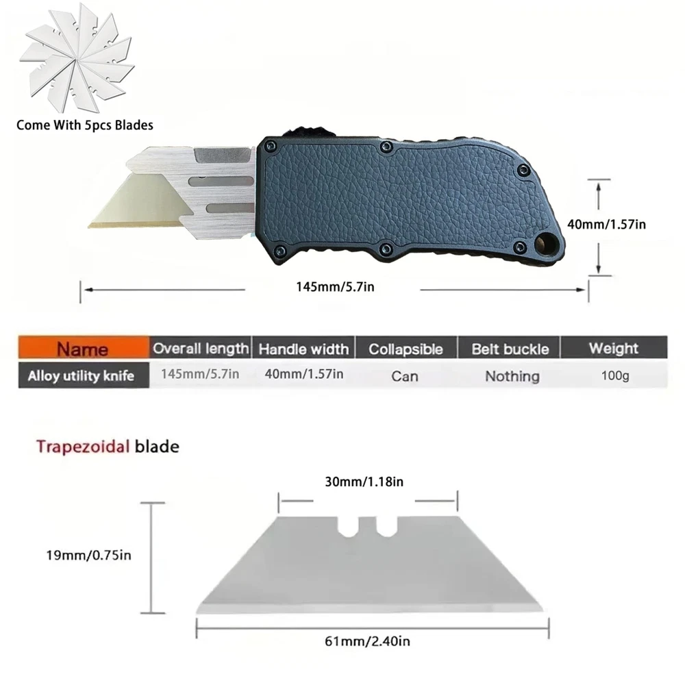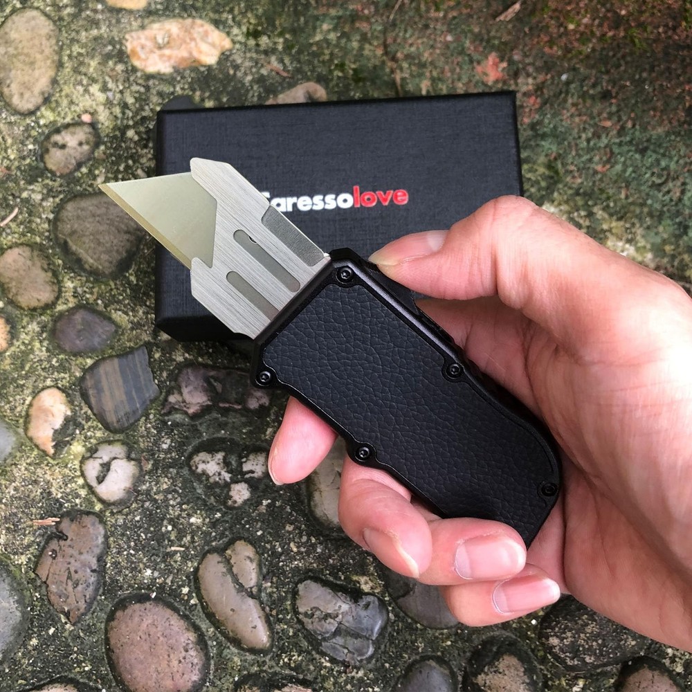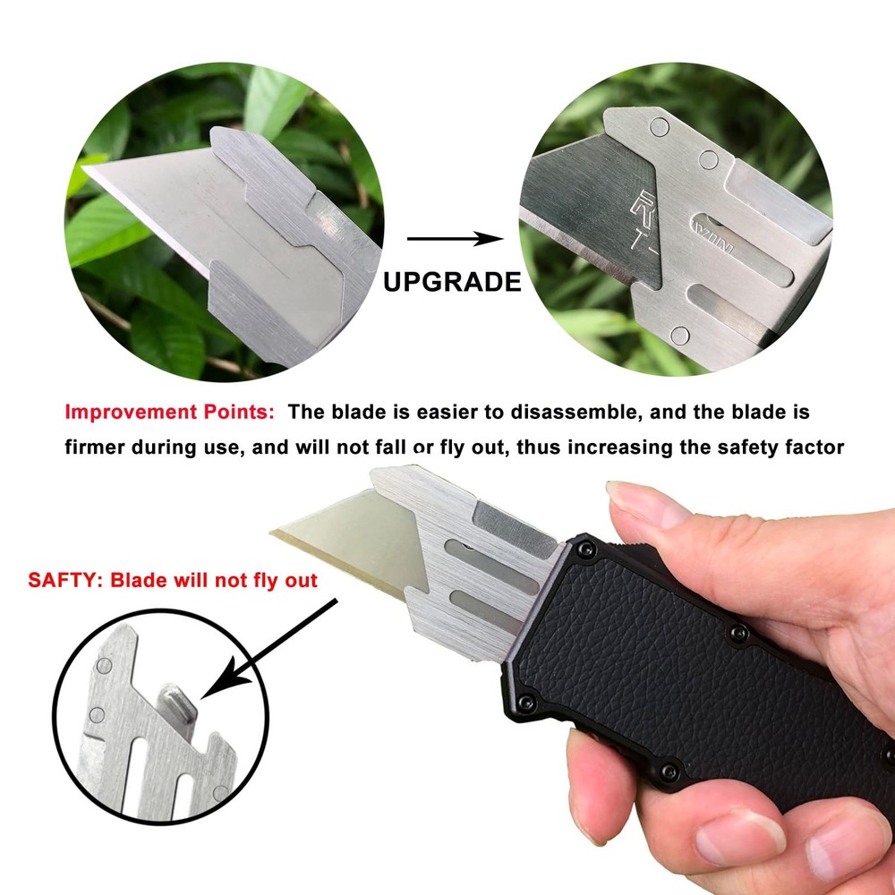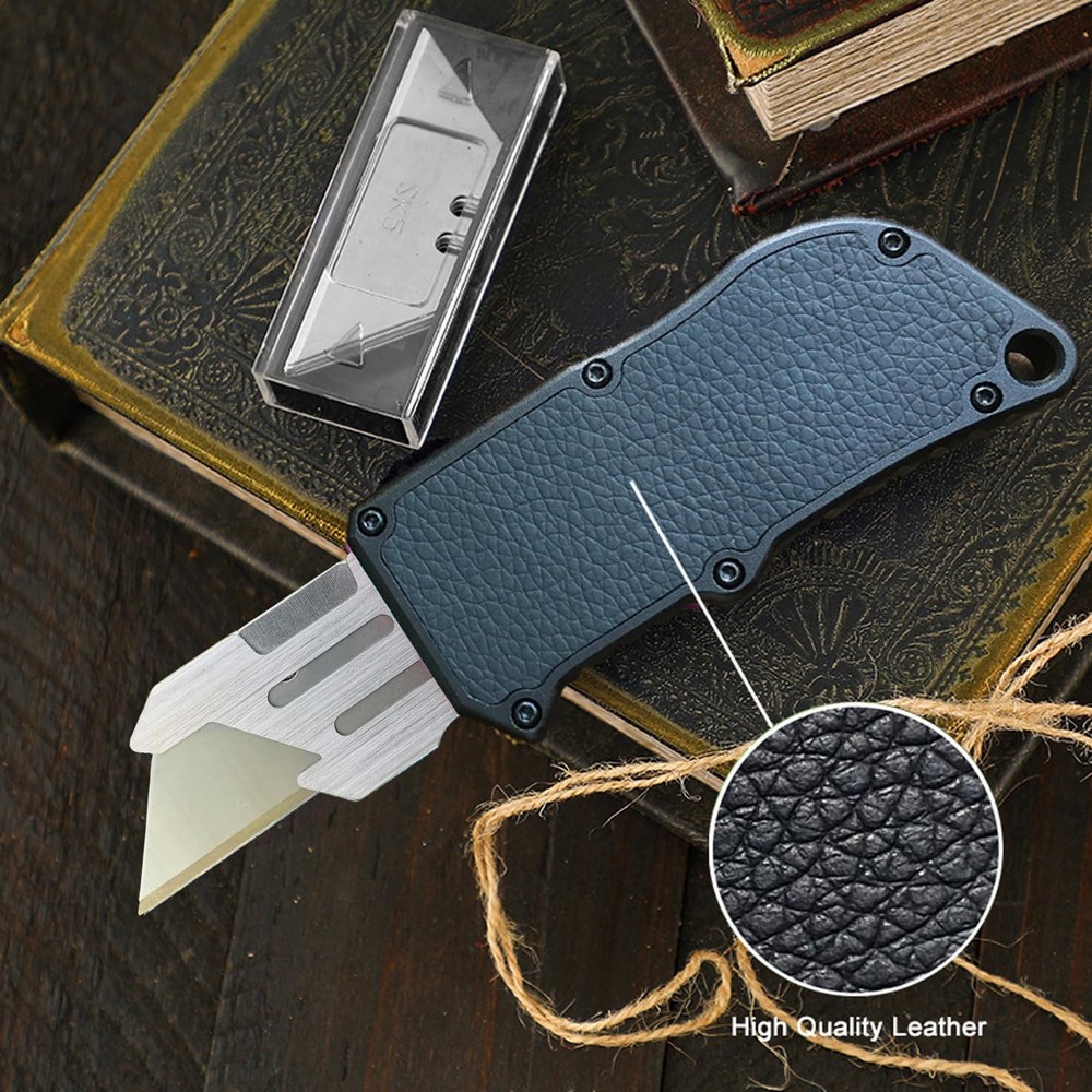 Our utility knife made of aviation aluminum shell. durable and sturdy EDC for daily life. A sharp blade work knife will easily cut through cardboard, carpet, drywall, rope, vinyl, leather or flooring. Use our multi purpose utility knife as a work knife, carton cutter, construction knife, cardboard cutter tool, carpet cutter tool. Portable and Attractive Design: Automatic utility knife is made of aluminum alloy. Equipped with real leather sticker handle. Handle with ergonomic design principle, comfortable to hold and prevent hand slipping Keep Sharp at All Times: The heavy duty utility knife come with 5PCS SK5 blades.The blades keep sharp for a long time without bending. When the extra blades are used up, you can buy SK5 blades locally and continue to use them Safety Automatic Box Cutter: The retractable knife features smart-retract technology. Blade retracts when slider-button. This makes it safer whether you use it or not Use for Various Applications: Push button auto - utility knife, Ideal pocket tool for unpacking boxes and envelops, also cutting paper, cardboard, plastic, carton, leather, PVC, foam, luggage and other materials Lifetime Guarantee: For our products, if you experience any issues with your product. Simply contact us directly through the Amazon messaging system and we will be happy to assist you with any questions, issues or difficulties you encounter. Complete customer satisfaction is what we strive for