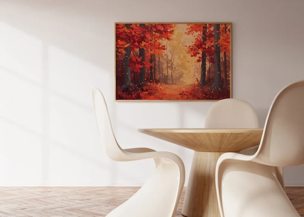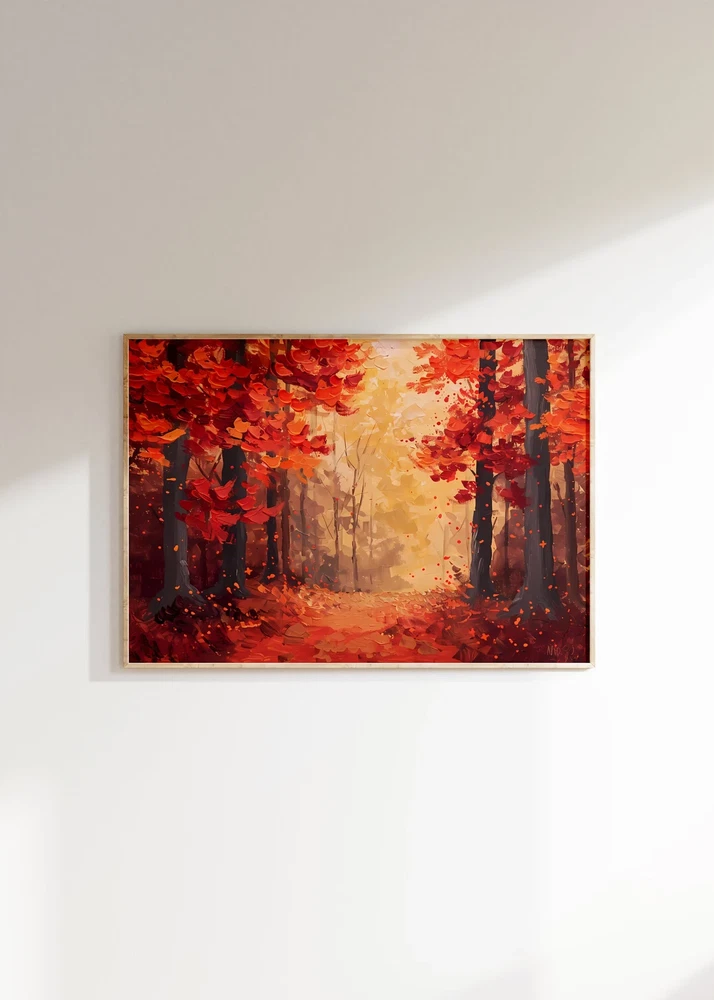 Autum Season and Red Tall Trees Painting Poster Premium Quality Choose your Size