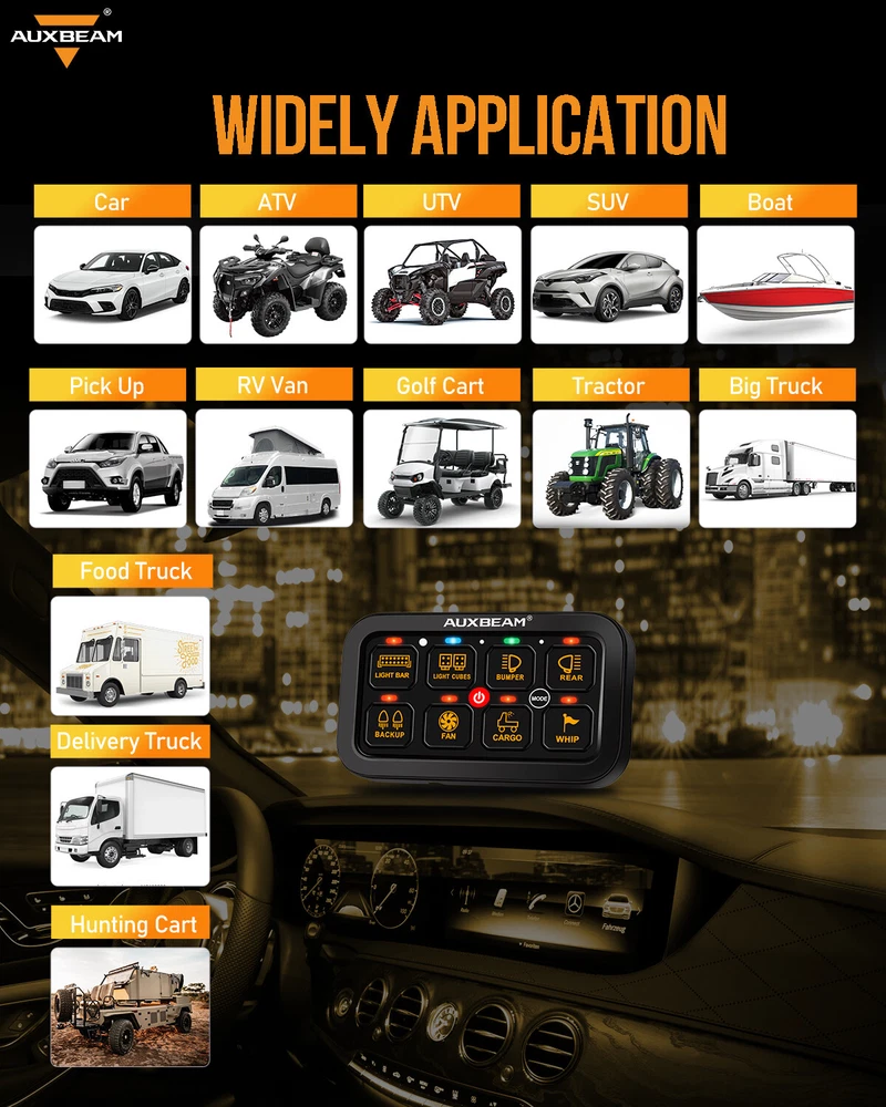 smafay Welcome Description RA80 Series RGB switch panel is now available! ★Upgraded Functions: ✔ RGB backlit - Unlimited color options match dash lighting and vehicle ✔ 3 mode setting - Toggle/ Momentary/ Pulsed ✔Manual backlit off - Turn off the backlit when it's daytime or when it's not necessary ✔ DIY switch panel - Use the provided 60pcs switch labels to indicate what’s connected to that switch. ✔ 10FT wiring harness - Extend from 9FT to 10FT ✔ Waterproof cover - Protect the switch panel from rain & snow weather or water Specification: Voltage Input: DC 12-24V Max Current: 60A Rated Voltage: 12V 20A / 24V 10A Max Power: 720W/12V, 1400W/24V Waterproof Rating: IP65 Operating Temperature: -40°C ~105℃/-40℉~221℉ Features: ▶RA80 RGB Switch Panel 8-Gang one-sided outlet switch panel. It allows you to control up to 8 different LED lights or devices. Meet all your electrical needs. 3 modes setting. Each switch has 3 kinds of light status, different indicator status represents different working modes. RED -Toggle, Constant light mode (Great for things like fog lights or driving. ) BLUE -Momentary, Press & hold the button to turn on, then release the button to turn off, just like pressing the horn button. GREEN -Pulsed, Flash mode. Press the switch once and the device will flash on/flash off, continuing until the switch is pressed again. RGB backlit color. Adjust backlit color and brightness to match your vehicle. Backlit brightness automatic dimmable. Automatic adjustment according to the brightness variation of the environment. Customize your own switch panel with 60 universal stickers . Use the provided switch labels to indicate what’s connected to that switch. Universal fitment. Widely use for Truck, Boat, Car, Bus, Off-road, Powersports, Marine, ATV, UTV, SUV, Side by Side, SxS, Heavy-duty machines, etc. Waterproof IP65 , high sensitivity, stability and strong anti-interference ability Easy Installation. No complicated wiring, no need to cut a big hole in your vehicle. Plug & play wiring harness can connect the LED lights or accessories easily. With 2 types of mounting brackets, you can mount the panel in the best location for your vehicle, such as the dash panel, center console, overhead sunglasses holder, etc. Packing Included: 1 x 8 Gang Switch Panel Set Product Display Payment & Shipping We accept Ebay Payment. Payment should be completed within 7 days of auction closing, or Unpaid Dispute will be filed . If you can not pay in time, please contact us. All items will be shipped out within 48 hours after your payment is verified. Return & Replacement 1. Our items come with a Three-month or One-year warranty. We shall pay much attention to your order and will do our best to solve any problems in a professional business manner. 2. If you are dissatisfied with our items, please contact us for return address within 30 days upon receipt of the delivery. The item must be returned with the original package for refund or exchange. Before you return, please check twice to confirm the item not work and contact our customer service representative, let us know the detailed problem or send us some pictures for confirmation. Feedback 1. Dear buyers, we appreciate your business, if you are satisfied with our service, please leave us a positive feedback and 5 scores DSR . Your recognition will make us more confident to develop business and serve you better. 2. Our goal is to make sure you are a happy buyer and pleasant shopping with us. If you have any questions, please contact us for a resolution firstly . Our working time is (GMT+8) Monday to Friday, 9:00-18:00. We will respond your email as soon as we can . 3. We understand the concerns and frustrations you might have, and will do our best to resolve the issues. Please give us the opportunity to resolve any problem. Thank you for visiting my store! On Dec 4, 2024 at 01:54:27 PST, seller added the following information: